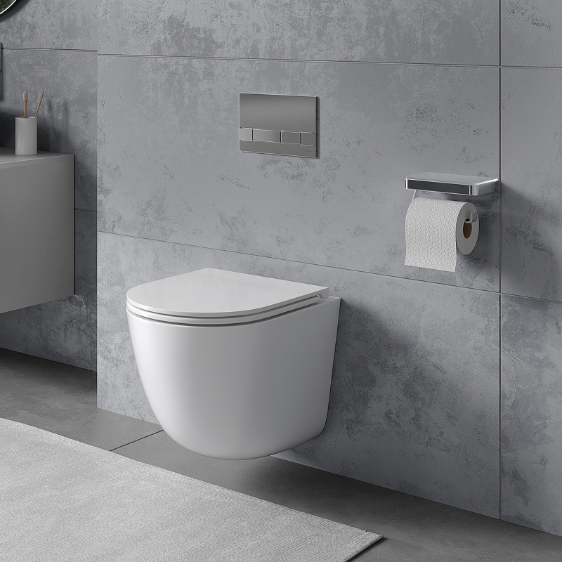 - Ультратонкая кнопка смыва минимально выступает за поверхность кафеля.