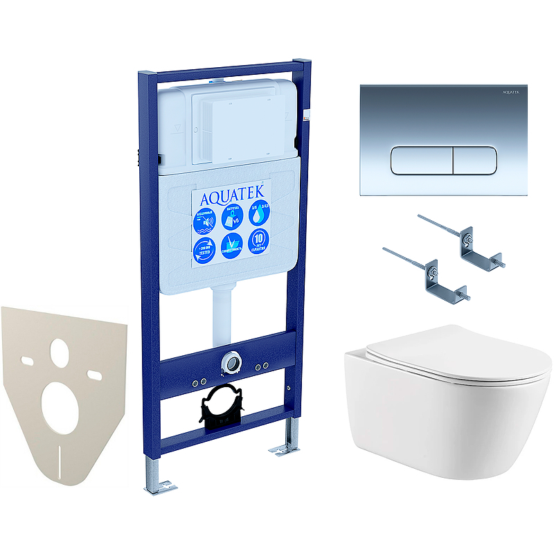 Комплект унитаза с инсталляцией Aquatek Set Aquatek Оберон KDI16 с сиденьем Микролифт и клавишей смыва Хром глянцевый.