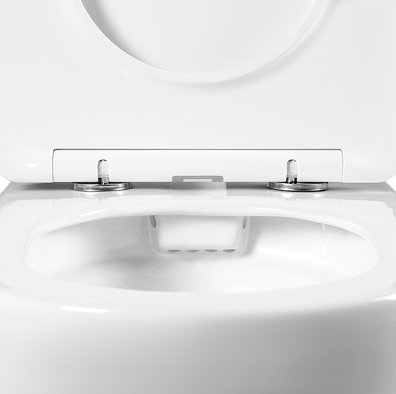 - Сиденье из дюропласта с плавным опусканием крышки (микролифт), быстросъемное, тонкое.