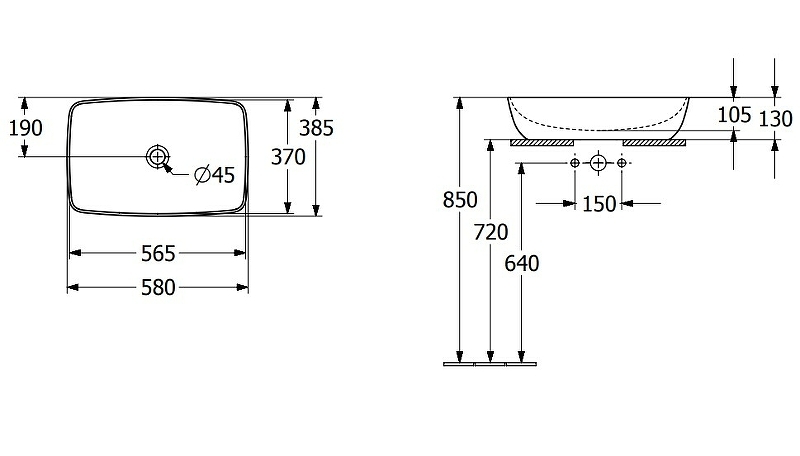 - Размер чаши (ШхВхД): 58x13x38,5 см.