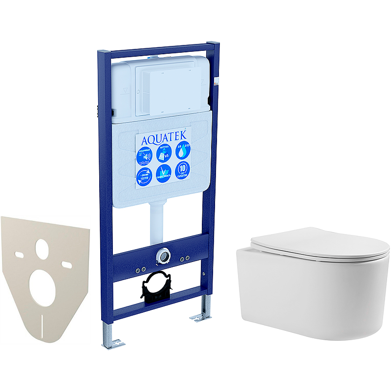 Комплект унитаза с инсталляцией Aquatek Set Aquatek Мия с сиденьем Микролифт, без крепежа и клавиши смыва.