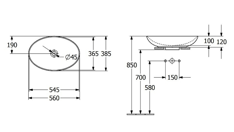 - Размер чаши (ШхВхД): 56x15x38,5 см.