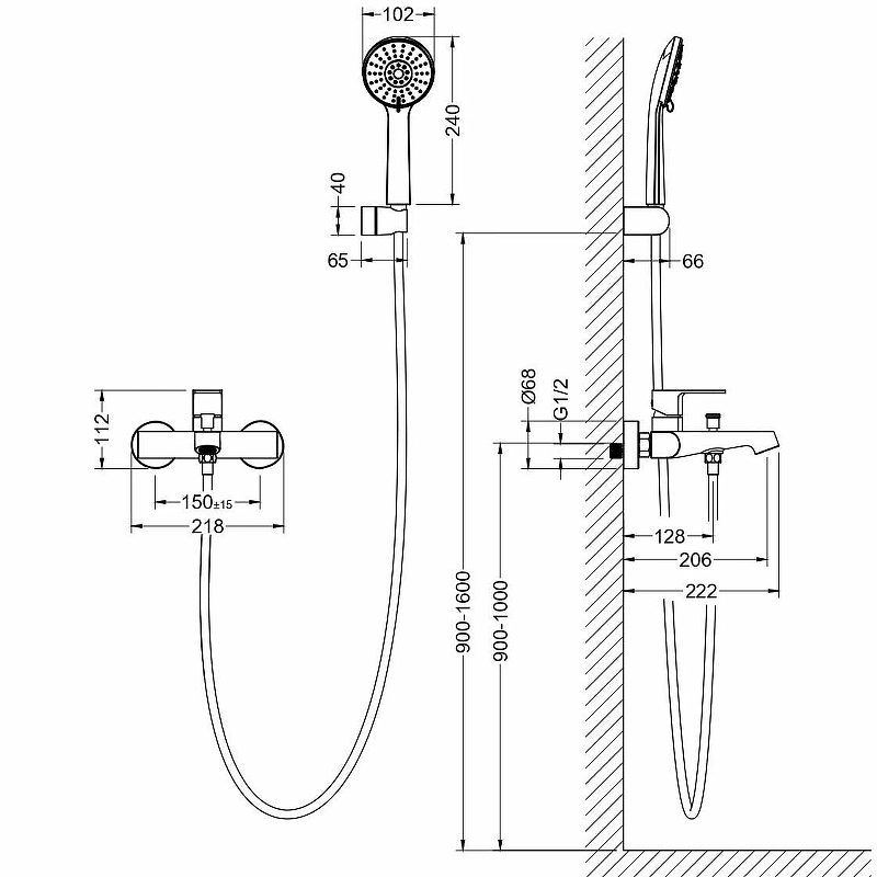 - Размер ручного душа (ШхВ): 102х240 мм.