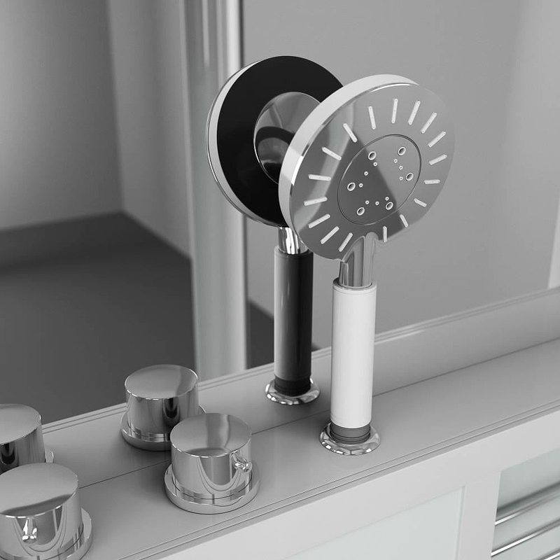 - Одна стеклянная распашная дверь с универсальной ориентацией (установка петель слева или справа). Закаленное стекло толщиной 6 мм: травмобезопасное и ударопрочное. Стеклянные задние стенки толщиной 5 мм.