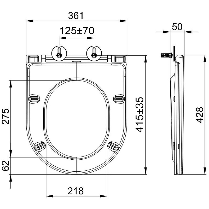 - Сиденье из дюропласта с плавным опусканием крышки (Микролифт), быстросъемное.
