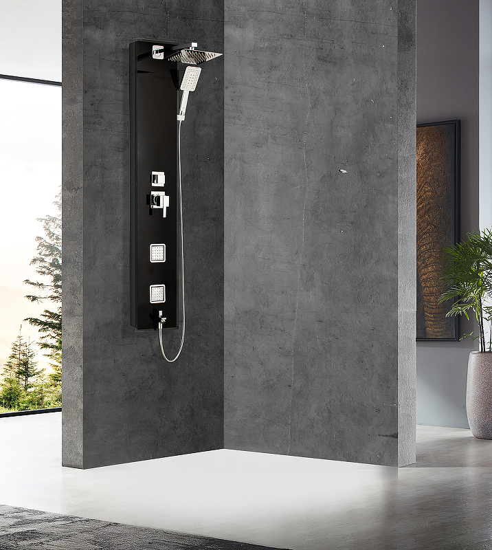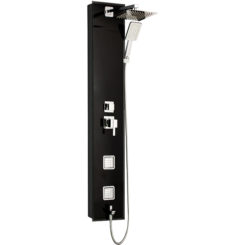 Настенная душевая панель WeltWasser WW GL 14251 BL со смесителем с изливом, с гидромассажем.