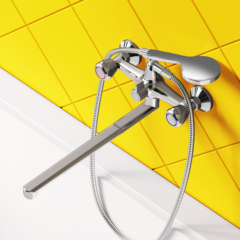Смеситель для ванны Dorff Modern D7095000 универсальный. Комплектуется керамическими кран-буксами, который обеспечивает бесшумную работу смесителя, а так же имеются плавные вентильные переключатели, что позволяет без труда регулировать температуру воды.