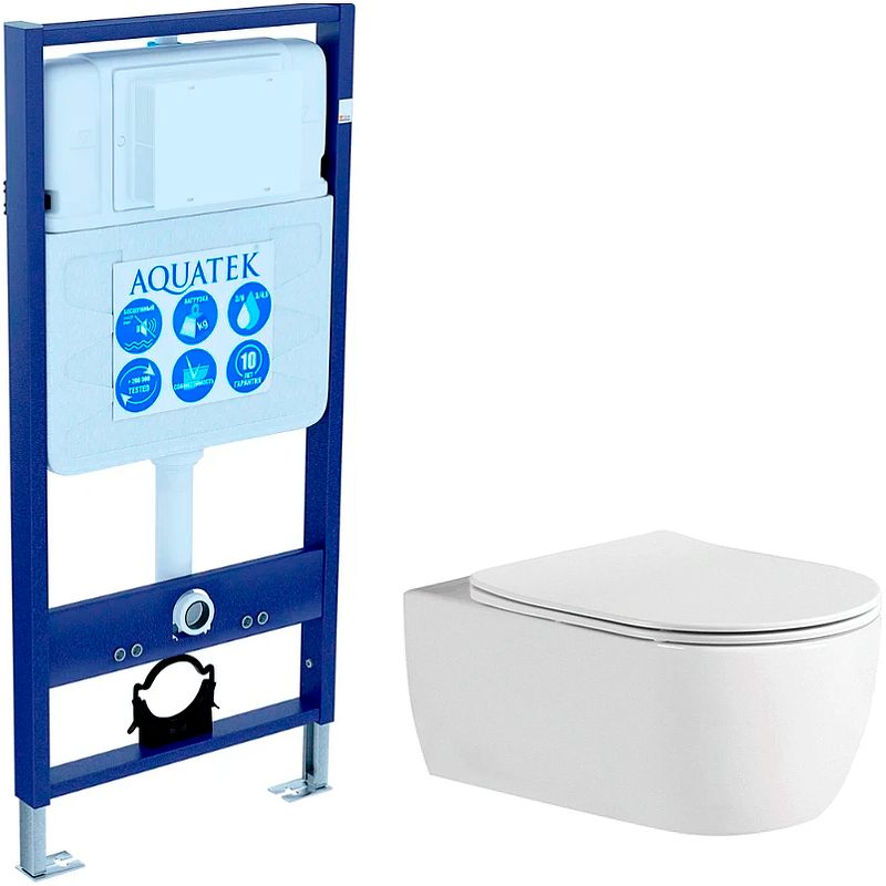 Комплект унитаза с инсталляцией Aquatek Set Aquatek Европа New с сиденьем Микролифт, без крепежа и клавиши смыва.