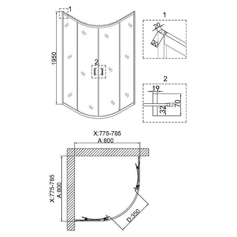 - Размеры (ШхВхД): 800x1950х800 мм.