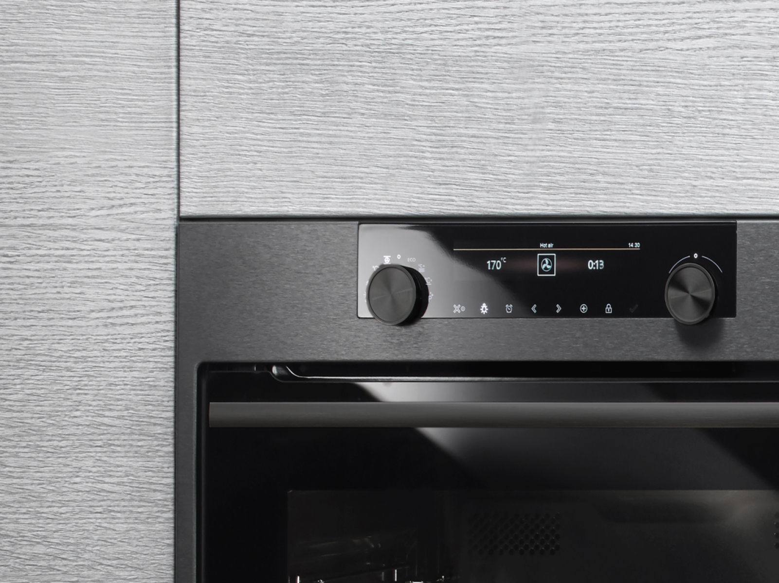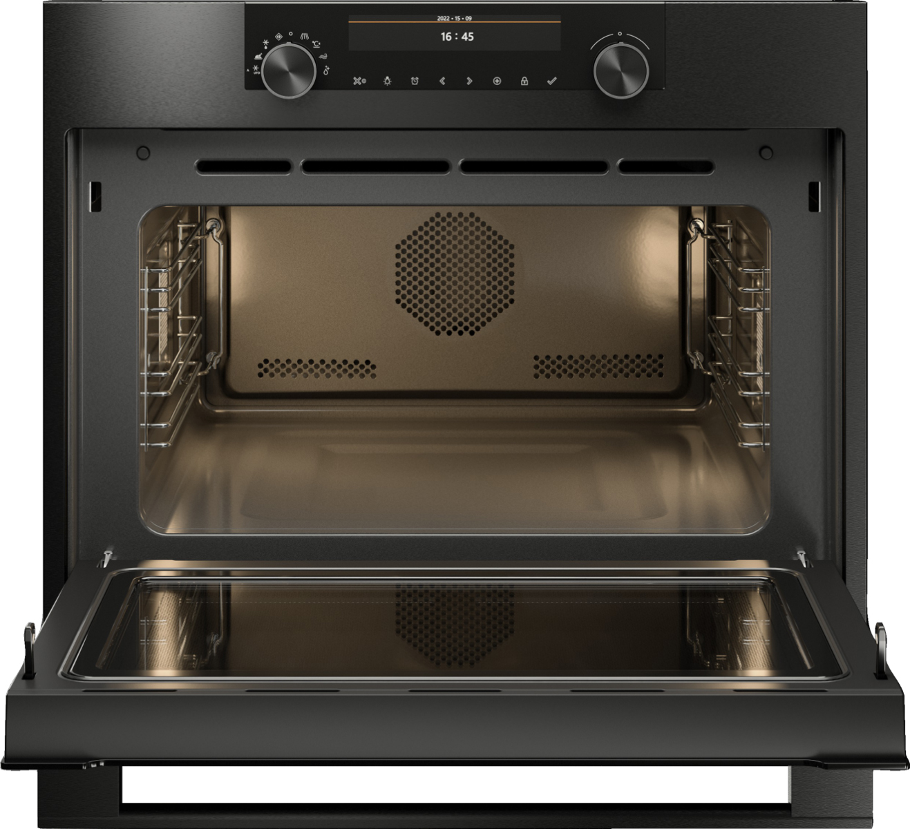 Технология равномерного распределения микроволн Stirrer позволяет отказаться от вращающейся тарелки. Благодаря вместимости в 51 литр прибор даёт комфортные разогрев / приготовление даже объёмных блюд, например, осуществляет запекание цыплёнка. Стеклянный противень делает этот процесс удобнее. Особенности Дверца Microwave CoolDoor состоит из трёх стёкол, термозащитного слоя и сетки. Она защищает пользователей от излучения, а также оставляет фронт достаточно прохладным. Блокировка настроек не даст случайным образом изменить или включить устройство. Это обезопасит жилище. Вентилятор охлаждения выводит лишние запахи, а также помогает прибору не перегреваться, вытягивая лишний жар наружу. Возможности модели Данный прибор регулирует мощность по 6 различным позициям. В режиме «Моя СВЧ» можно задать данное значение и время по умолчанию, а при необходимости — отрегулировать. Модель имеет несколько программ для разморозки и 73 специализированных программ для идеального приготовления пищи. Также вы можете создать свою и сохранить её в «избранное». А пошаговая готовка задействует в строгой последовательности несколько режимов. Ключевые преимущества дверца Microwave CoolDoor; 73 автопрограммы; пошаговое приготовление. традиционная очистка Ключевые особенности Встраиваемая микроволновая печь Asko OM8487B выполнена в цвете "чёрная сталь". Это позволяет ей стать стильным и современным дополнением к кухне.