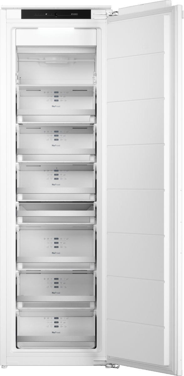 Встраиваемая морозильная камера Asko FN31831I — это современное и функциональное решение для хранения продуктов в домашних условиях. Этот устройство произведено в Сербии и обладает гарантией в 24 месяца, что подтверждает его высокое качество и надежность. Прибор имеет впечатляющие размеры: высота составляет 177.2 см, ширина — 55.5 см, глубина — 54.5 см. Это позволяет вместить внутрь 235 литров продуктов, при этом полезный объем составляет 212 литров. Дизайн техники выполнен в классическом белом цвете, что делает ее универсальной для любого интерьера. Управление осуществляется электронно, что обеспечивает удобство и простоту в использовании. На дисплее отображается информация о текущем состоянии прибора, что позволяет контролировать процесс хранения продуктов. Мощность замораживания составляет 10 кг за 24 часа, что делает эту модель идеальной для сохранения свежести и полезных свойств продуктов. Особенностью морозильника является система замораживания NoFrost, которая предотвращает образование льда внутри камеры, поэтому прибор не надо размораживать, а также обеспечивает стабильную работу техники и продлевает срок ее службы. В приборе предусмотрено 8 отсеков для удобного размещения продуктов. Освещение осуществляется с помощью LED-ламп, что обеспечивает яркий и равномерный свет. Монтаж дверных панелей осуществляется по принципу Door-on-Door, что обеспечивает надежное и плотное закрытие дверцы. Дверной упор расположен справа, что обеспечивает удобство использования в зависимости от расположения техники в помещении. Устройство обладает классом энергопотребления А++, что говорит о его высокой энергоэффективности. Годовое потребление электроэнергии составляет 243 кВтч. Мощность подключения составляет 80 Вт. Уровень шума не превышает 39 дБ, что делает работу устройства максимально комфортной для пользователя. Ключевые преимущества: Простота и удобство в использовании благодаря электронному управлению Высокая энергоэффективность с классом энергопотребления А++ Система размораживания NoFrost для продолжительной и стабильной работы Ключевые особенности Встраиваемый морозильник Asko FN31831I объемом 212 л имеет 8 выдвижных ящиков. Он может использоваться самостоятельно или же часть холодильника конфигурации side-by-side.