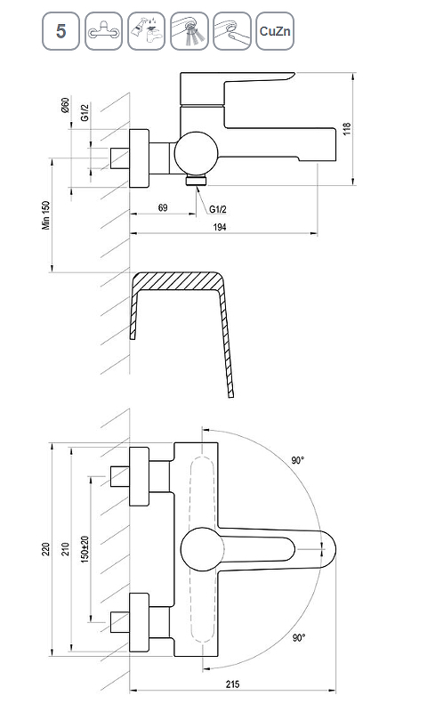 Смеситель для ванны Ravak Puri PU 022.20/150 X070185.