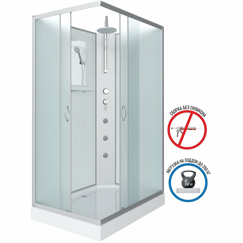 - Габариты с верхним душем (высота душа устанавливается единоразово при установке) (ШхВхД): 1000х2100-2400х800 мм.