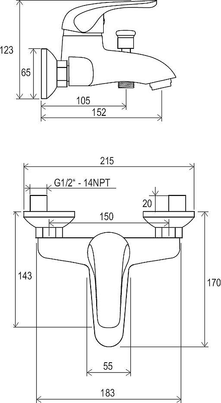 Смеситель для ванны Ravak Rosa RS 022.00/150 X070011.