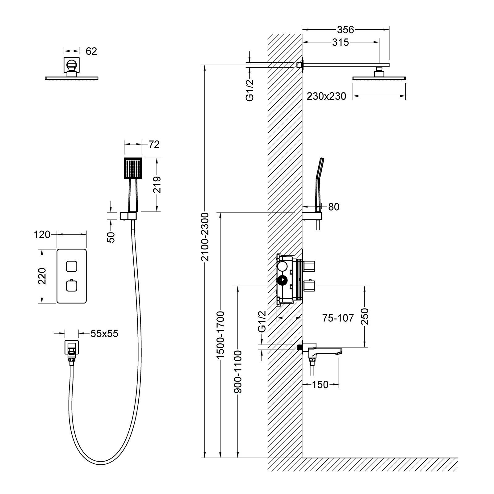 Душевая система с термостатом Timo Petruma 5049 относится к премиальному сегменту, предназначена для монтажа в полой или твердой стене. Термостатический картридж поддерживает стабильную температуру воды, обеспечивая максимально комфортные условия для принятия водных процедур. Основные преимущества встроенной системы: элегантный внешний вид, все коммуникации и крепления спрятаны в стену снаружи видны только декоративные элементы. Установить встроенную систему можно в любом месте. Использовать такой смеситель очень удобно, регулировка температуры воды осуществляется ручкой термостата (расположена снизу). Включение режима "тропический душ" и увеличение напора осуществляется поворотом ручки дивертора (расположена сверху) влево. Регулируя напор воды в режиме "тропический душ" можно получить массажное воздействие различной интенсивности. Для переключения в режим "излив" верните ручку дивертора в исходное положение 12:00 (смеситель выключен), а затем поверните вправо. Увеличение напора воды осуществляется поворотом ручки вправо. Для включения режима "ручной душ" поверните излив к стене. Сложностей монтажа не возникает при установке элементов душевой системы опытным сантехником. Внимательно изучите инструкцию по монтажу и эксплуатации.