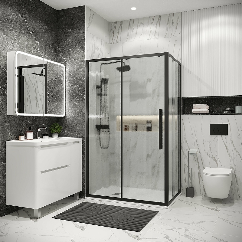 - Исполнение полотна двери: закаленное стекло шиншилла, толщиной 6 мм.