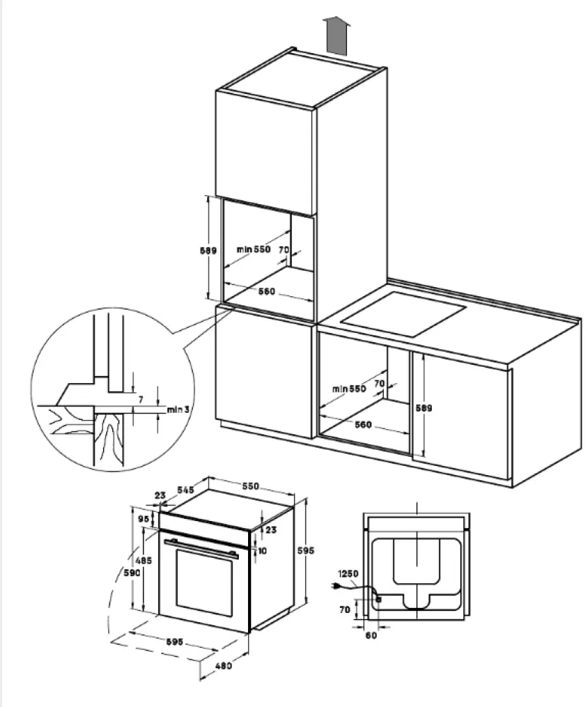 Габариты ниши для встраивания (В × Ш × Г): 57,8 × 55,1 × 54,6 см.