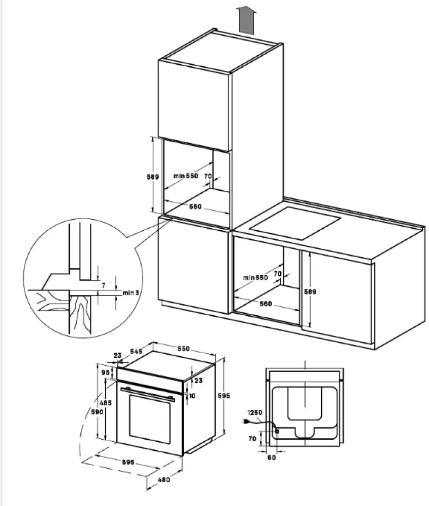 Габариты ниши для встраивания (В × Ш × Г): 58,9 × 56 × 55 см.