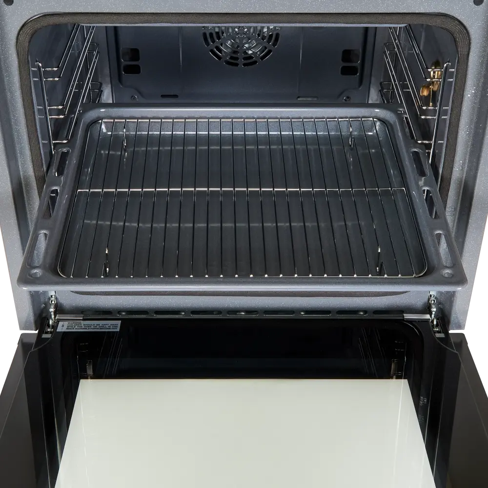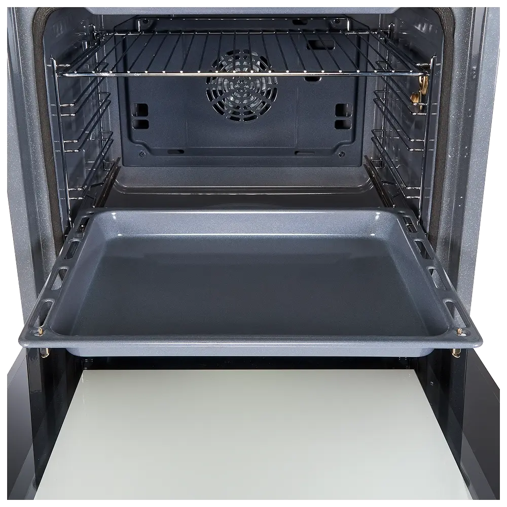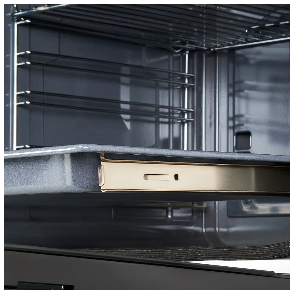 Телескопические направляющие полного выдвижения — удобное и безопасное выдвижение противня одной рукой: легко переворачивать, добавлять ингредиенты или проверять готовность блюд.