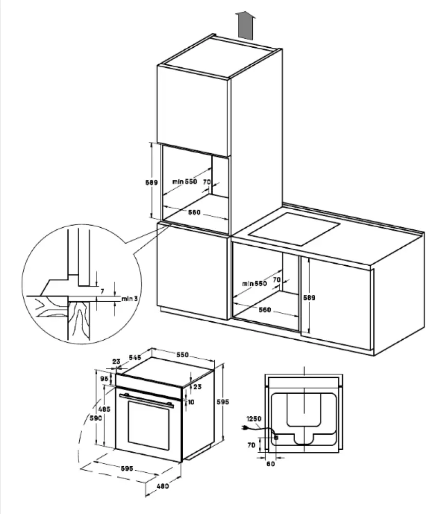 Габариты ниши для встраивания (В × Ш × Г): 57,8 × 55,1 × 54,6 см.