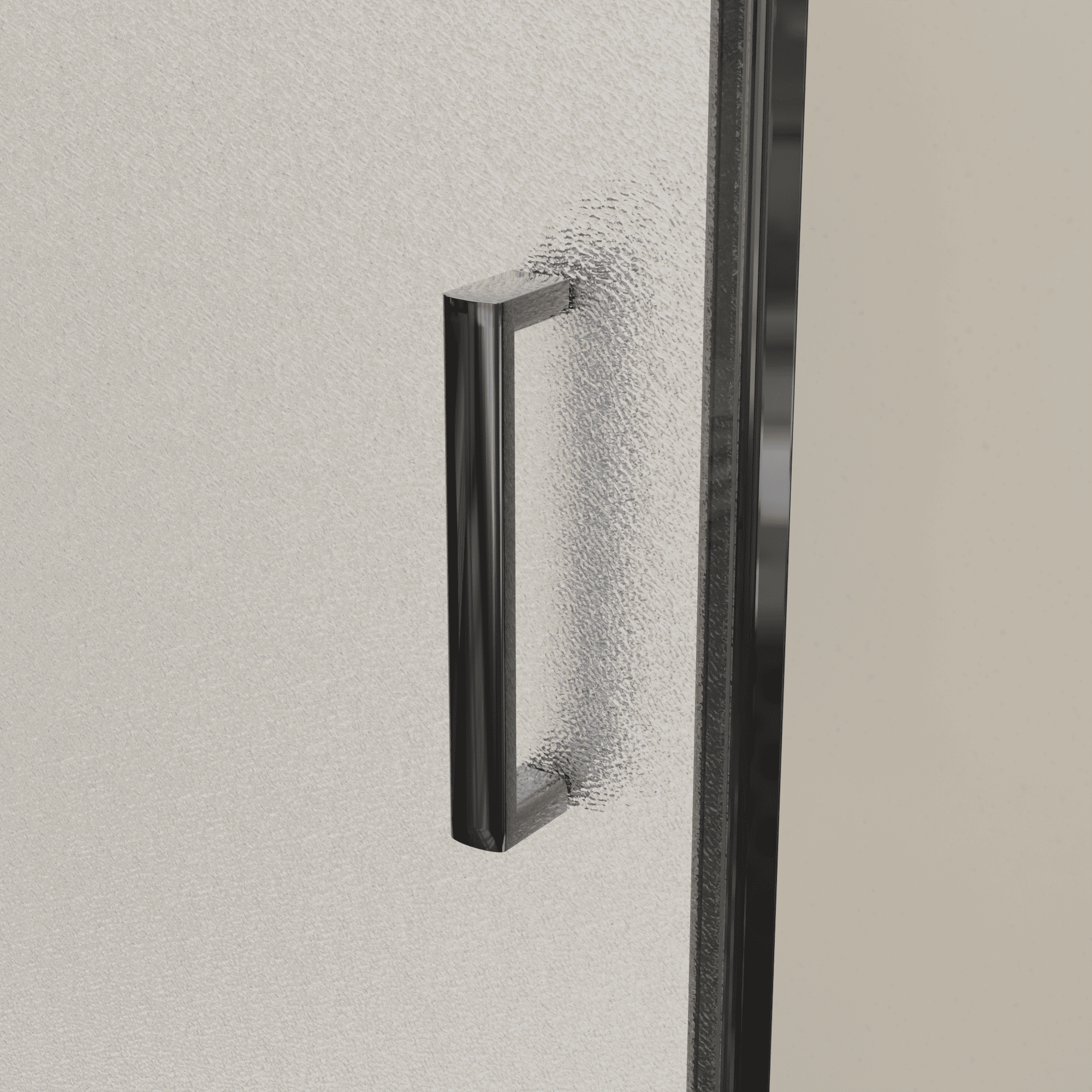 Душевая перегородка для ниши с раздвижной дверью, образует прямоугольную душевую зону. Ограждающая водяной поток, стеклянная дверь в душ, состоит из одного – стационарного полотна и второго полотна - «Дверь», установленного на ролики. При работе полотно плавно сдвигается вдоль душевой зоны, параллельно стационарного стеклянного полотна, образуя тем самым систему «Дверь - Купе».