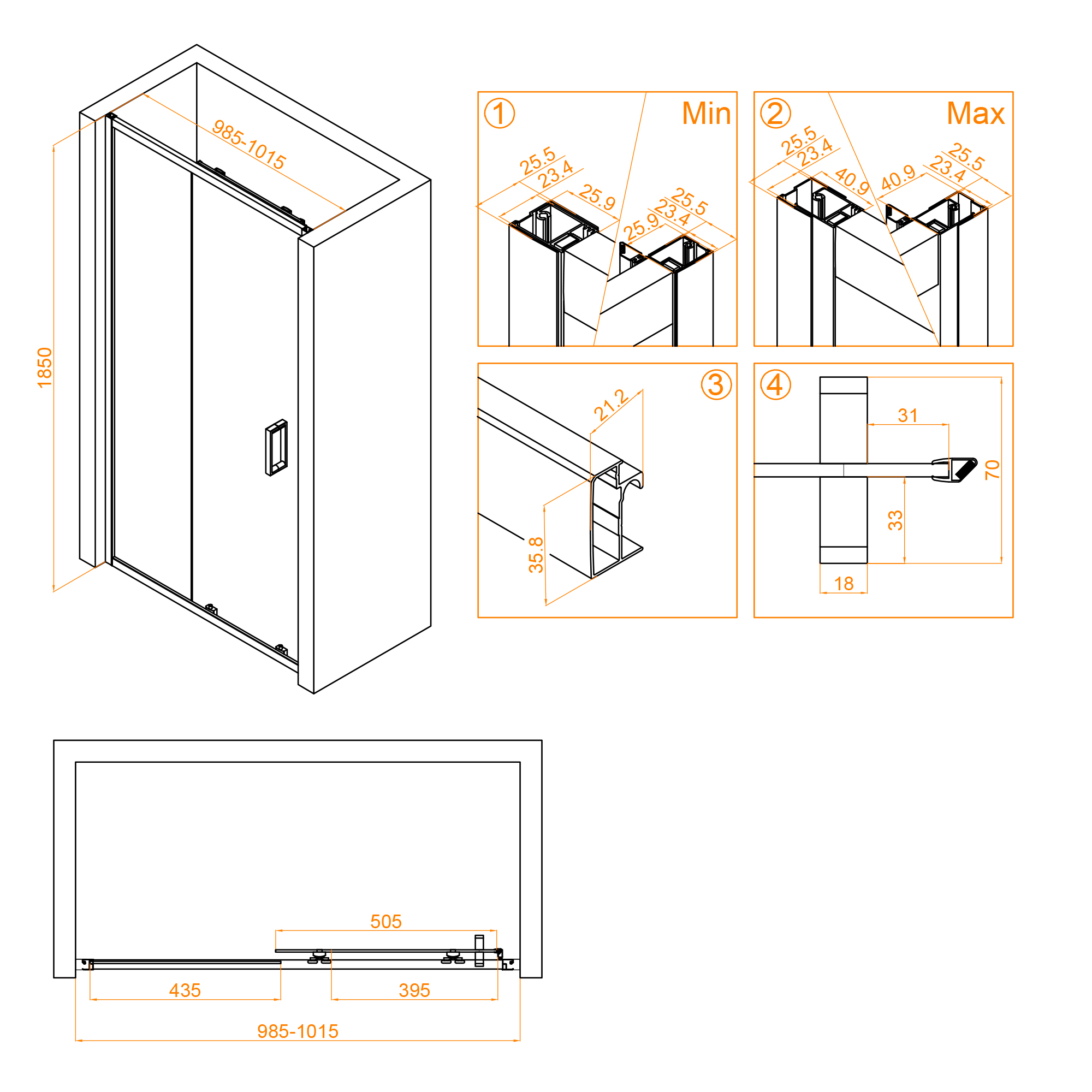 Регулируемый профиль - еще одно преимущество этой душевой двери. Он позволяет легко регулировать дверь по вертикали, что обеспечивает идеальное соответствие с ванныей комнатой.