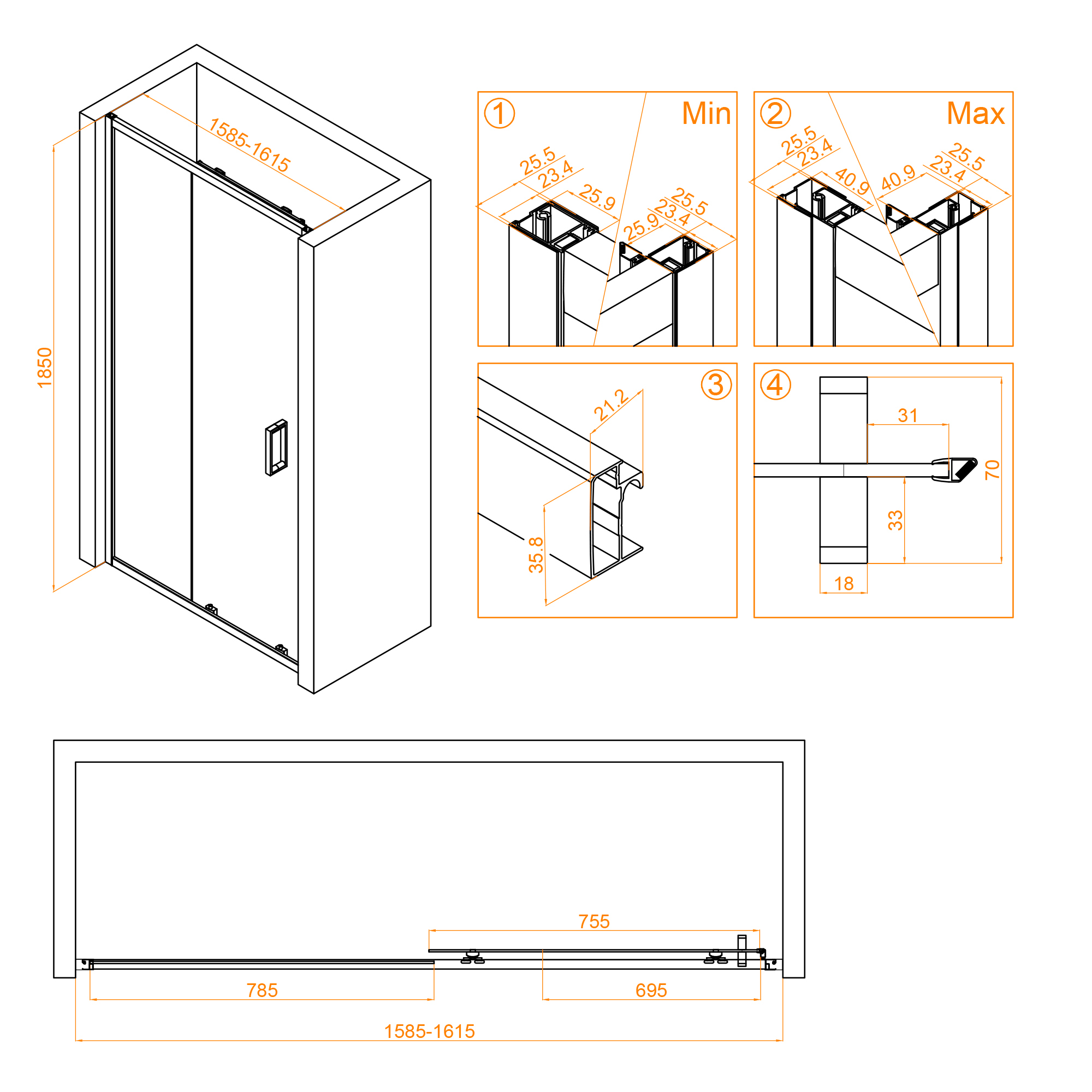 Регулируемый профиль - еще одно преимущество этой душевой двери. Он позволяет легко регулировать дверь по вертикали, что обеспечивает идеальное соответствие с ванныей комнатой.