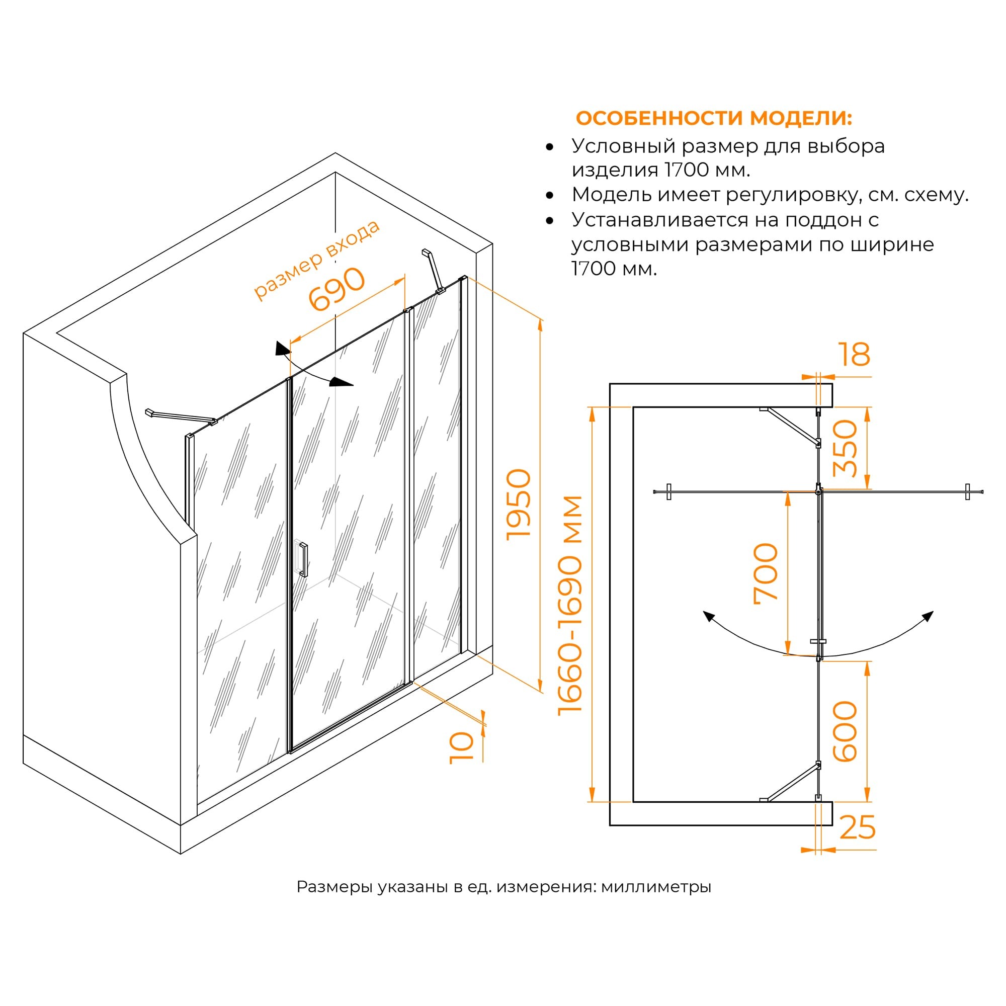 Распашные двери - это про свободу и легкость. Душевая дверь распашная. Петля имеет функцию подъема двери. Состоит из душевой двери RGW LE-004 и боковой панели RGW Z-09. Установка боковой панели со стороны открытия двери. Универсальная установка модели. В комплекте нижняя пороговая планка. Трап или поддон приобретается отдельно.