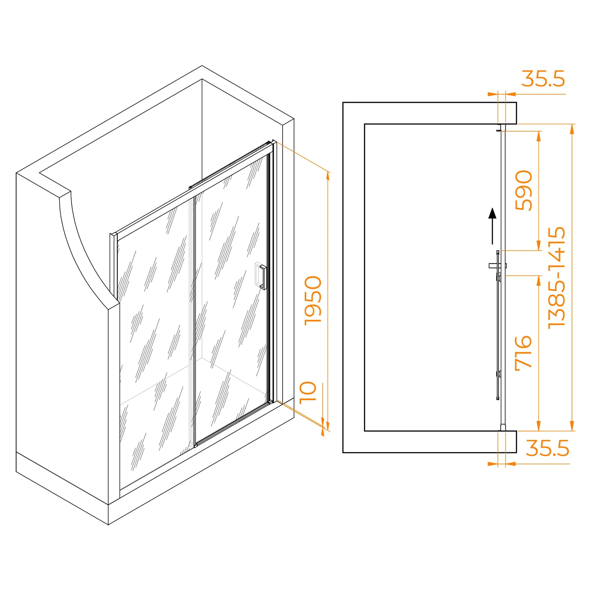 Конструкция дверей раздвижная, это позволяет максимально использовать доступное пространство в ванной комнате. Роликовый подшипник и регулируемый профиль упрощают установку и обеспечивают гладкое и бесшумное движение дверей.
