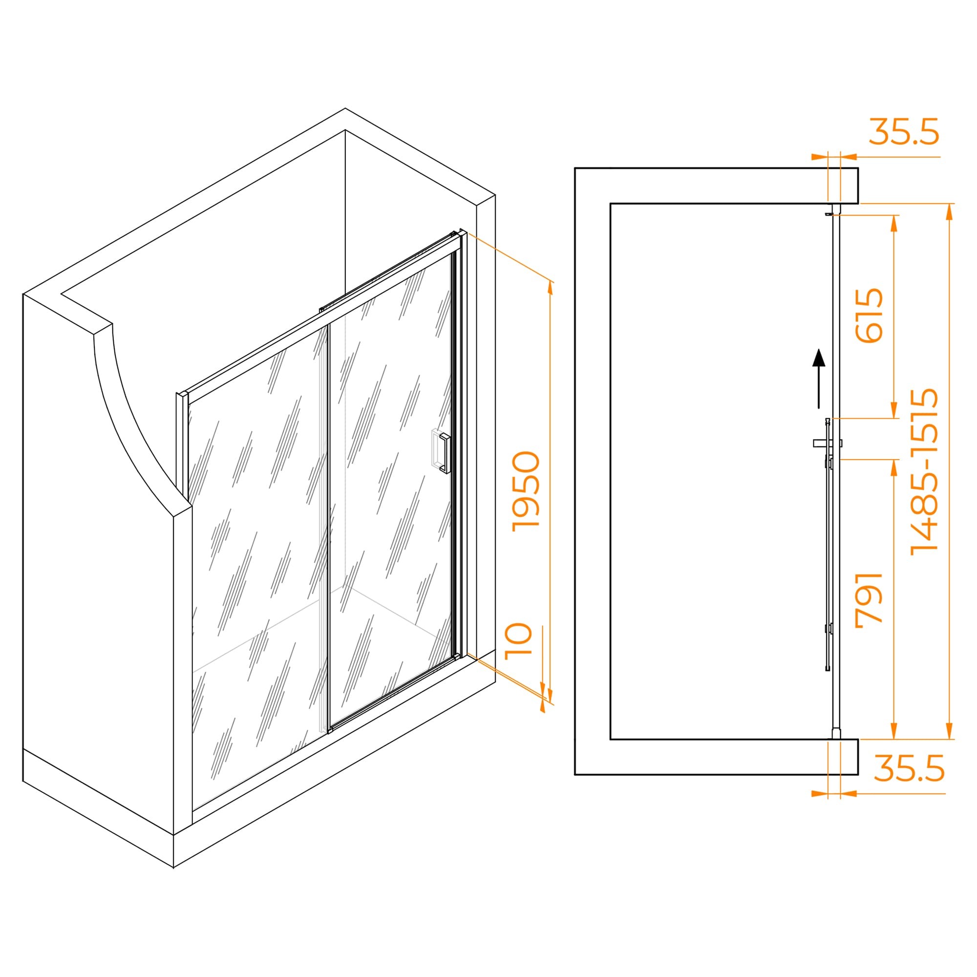 Конструкция дверей раздвижная, это позволяет максимально использовать доступное пространство в ванной комнате. Роликовый подшипник и регулируемый профиль упрощают установку и обеспечивают гладкое и бесшумное движение дверей.