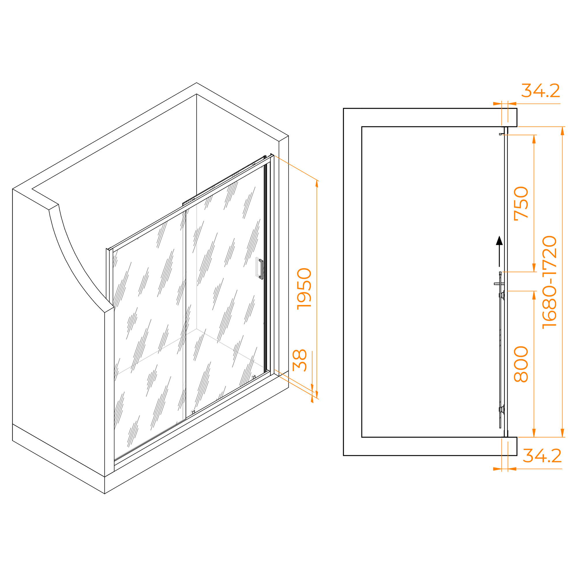 Цвет профиля душевой двери RGW PA-14B — черный, что придает декору вашей ванной комнаты нотку элегантности и современности. Общая высота 1950 мм гарантирует, что он идеально впишется в большинство ванных комнат стандартного размера, создавая цельный и целостный вид.