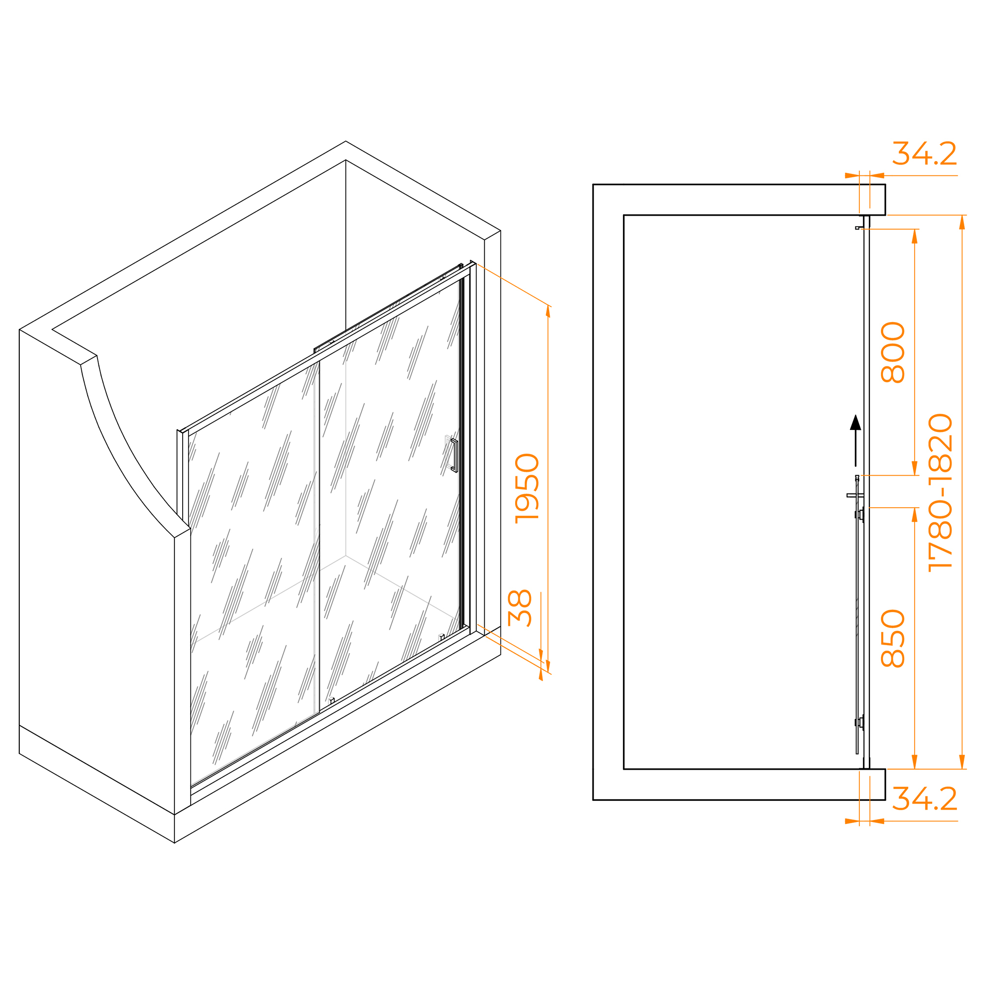 Цвет профиля душевой двери RGW PA-14B — черный, что придает декору вашей ванной комнаты нотку элегантности и современности. Общая высота 1950 мм гарантирует, что он идеально впишется в большинство ванных комнат стандартного размера, создавая цельный и целостный вид.