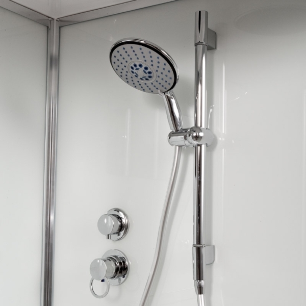 Стильная душевая кабина AvaCan D129 сочетает в себе высокую функциональность, практичность и надежность. Для изготовления применяют безопасное закаленное стекло толщиной 4 мм, надежно фиксируемое алюминиевым профилем. Цвет профиля хром. В комплекте полочка, зеркало, деревянная вставка в поддон.