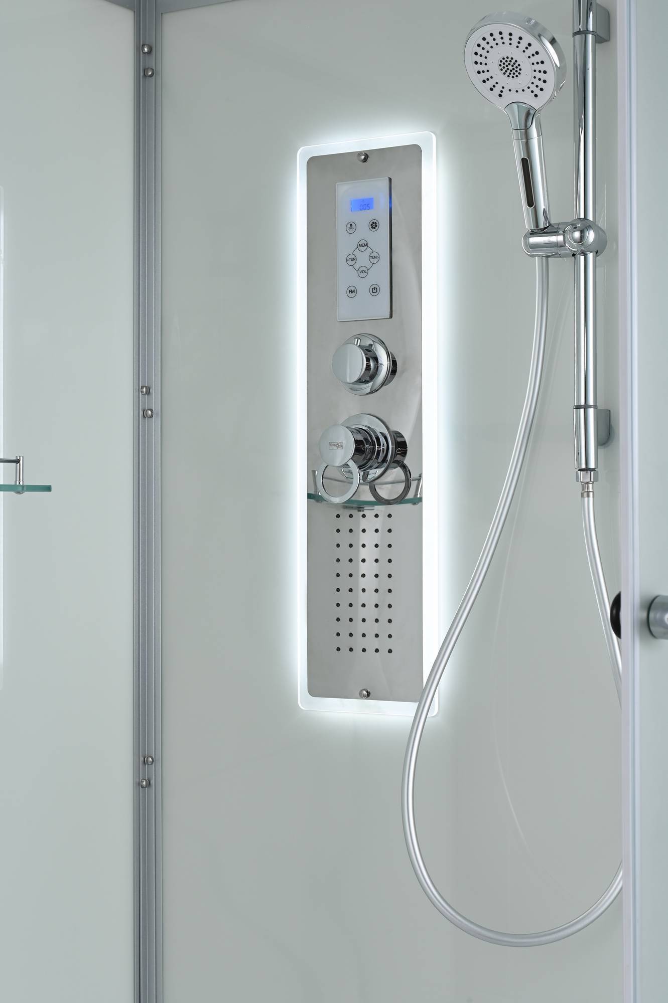 Блютуз / LED подсветка /радио /вытяжка / Душевая штанга / Переключатель режимов / Полочка / Сифон / резьбовой смеситель / Тропический (верхний) душ /арома-лейка с витамином С/