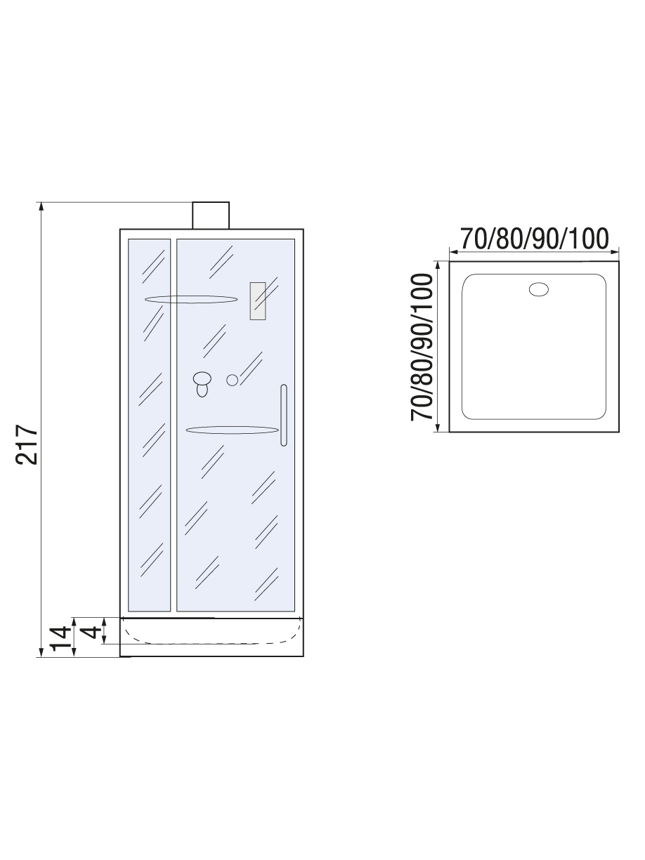 Габариты (Ш × Г × В): 90×90×217 см.