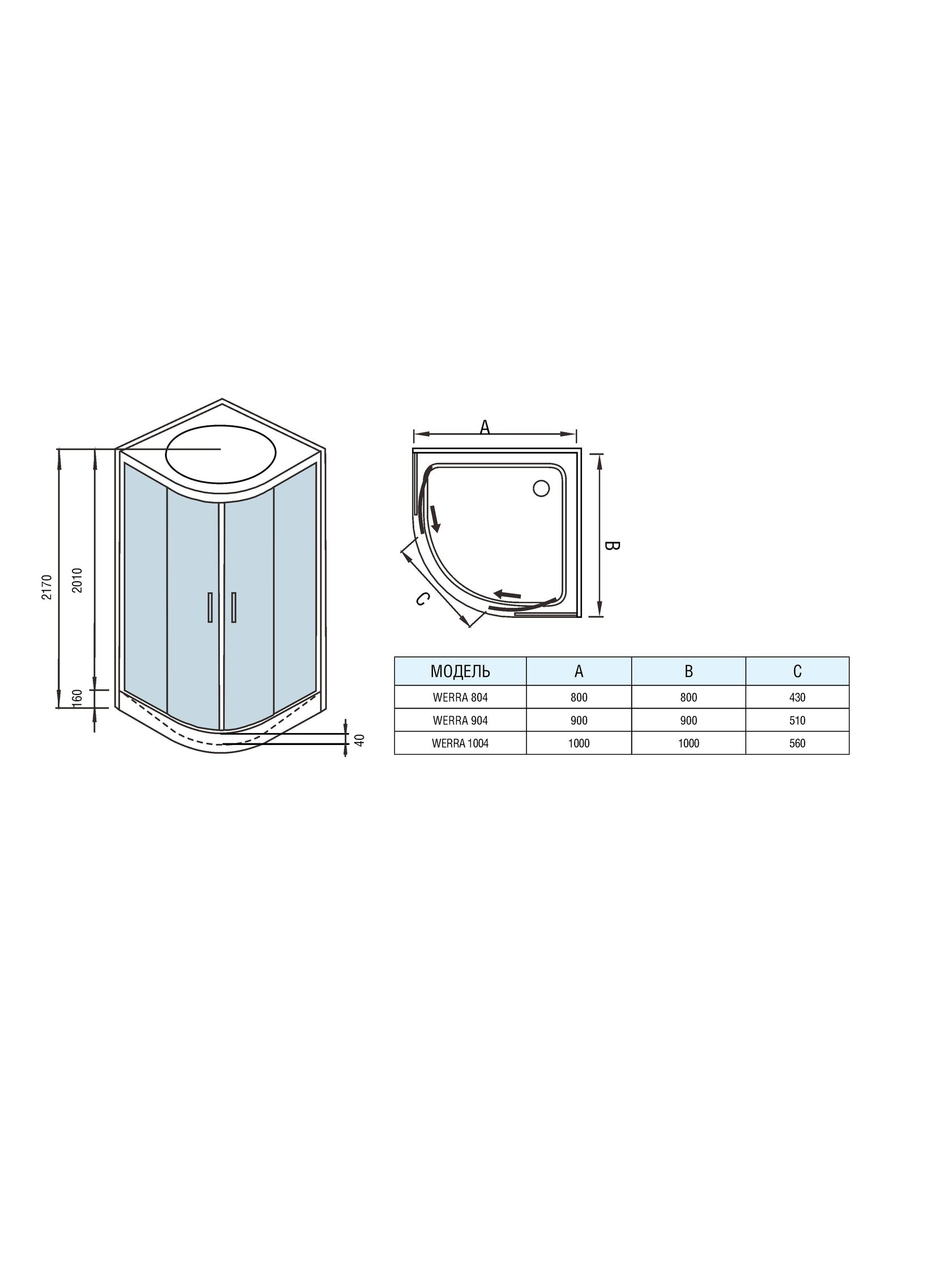 Габариты (Ш × Г × В): 900×900×2170 мм (0,9×0,9×2,17 м).