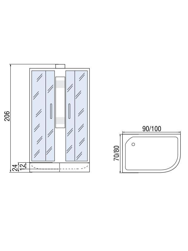 Габариты (Ш × Г × В): 900×800×2060 мм (0,9×0,8×2,06 м).