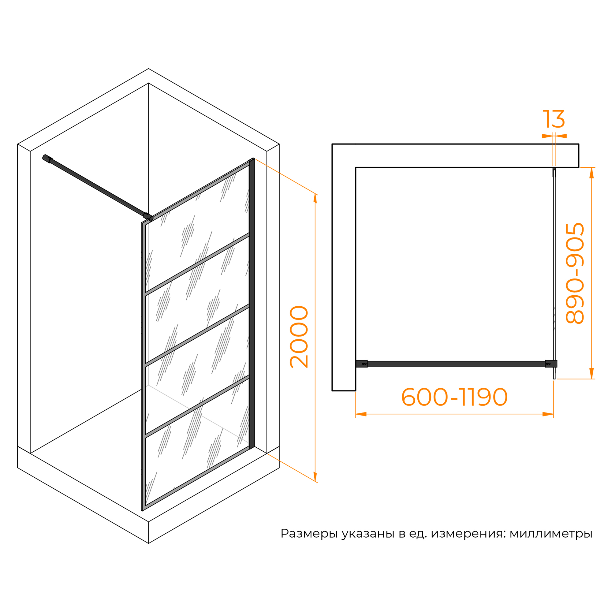 Душевая перегородка WA-019B — идеальное решение для создания стильного и функционального пространства в ванной комнате. С общей высотой 2000 мм, она надежно защищает от разбрызгивания воды за пределы душевой зоны.