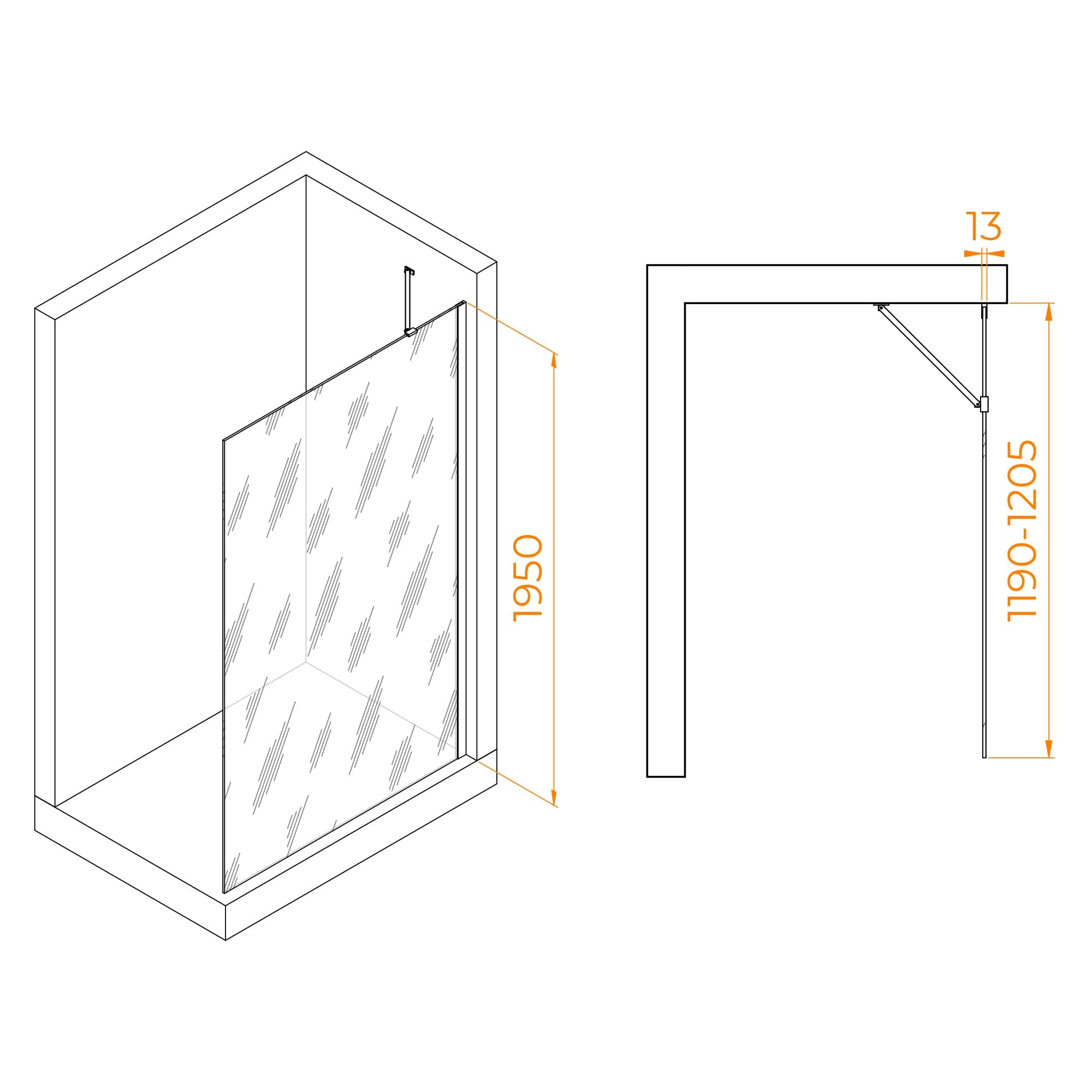 Высота перегородки составляет 195 см, что обеспечивает достаточное пространство для принятия душа как людям среднего роста, так и более высоким людям.