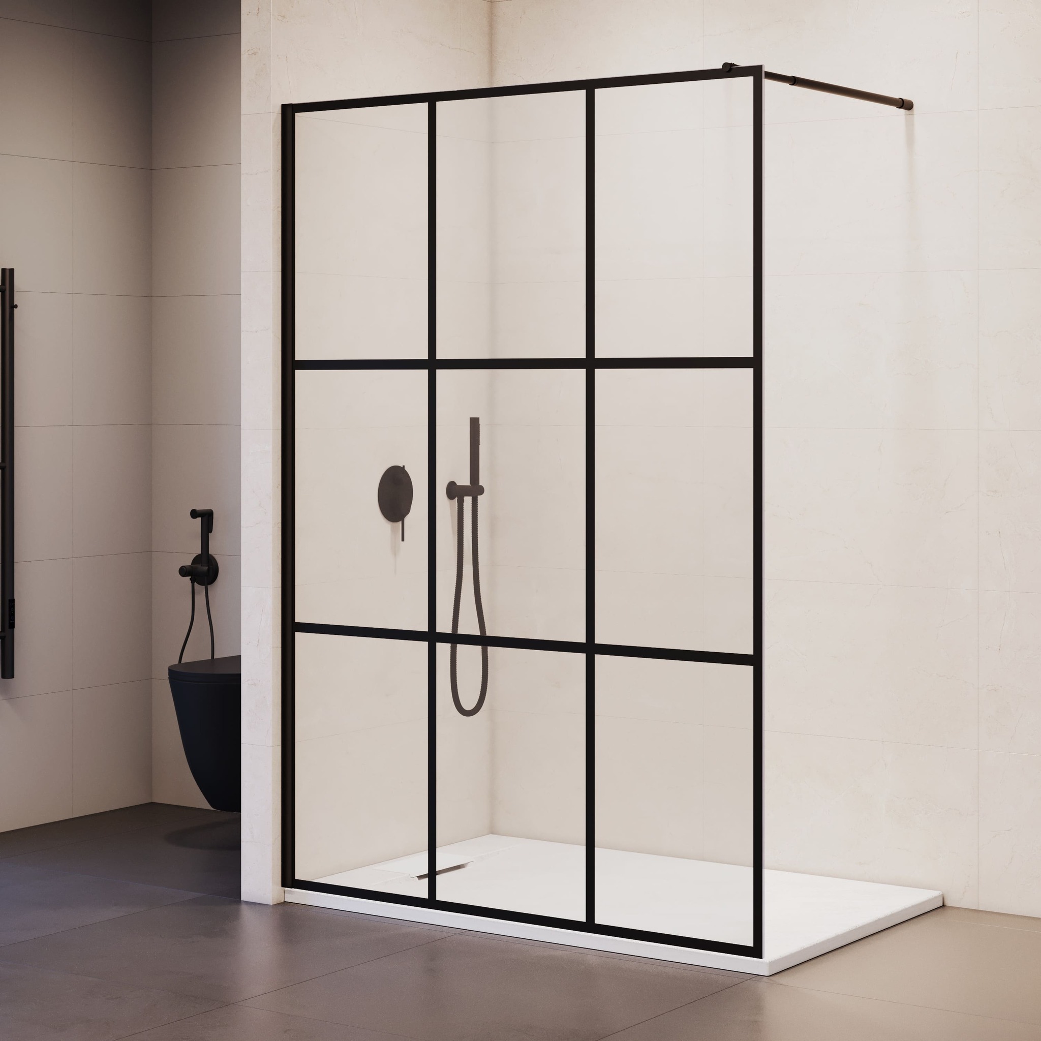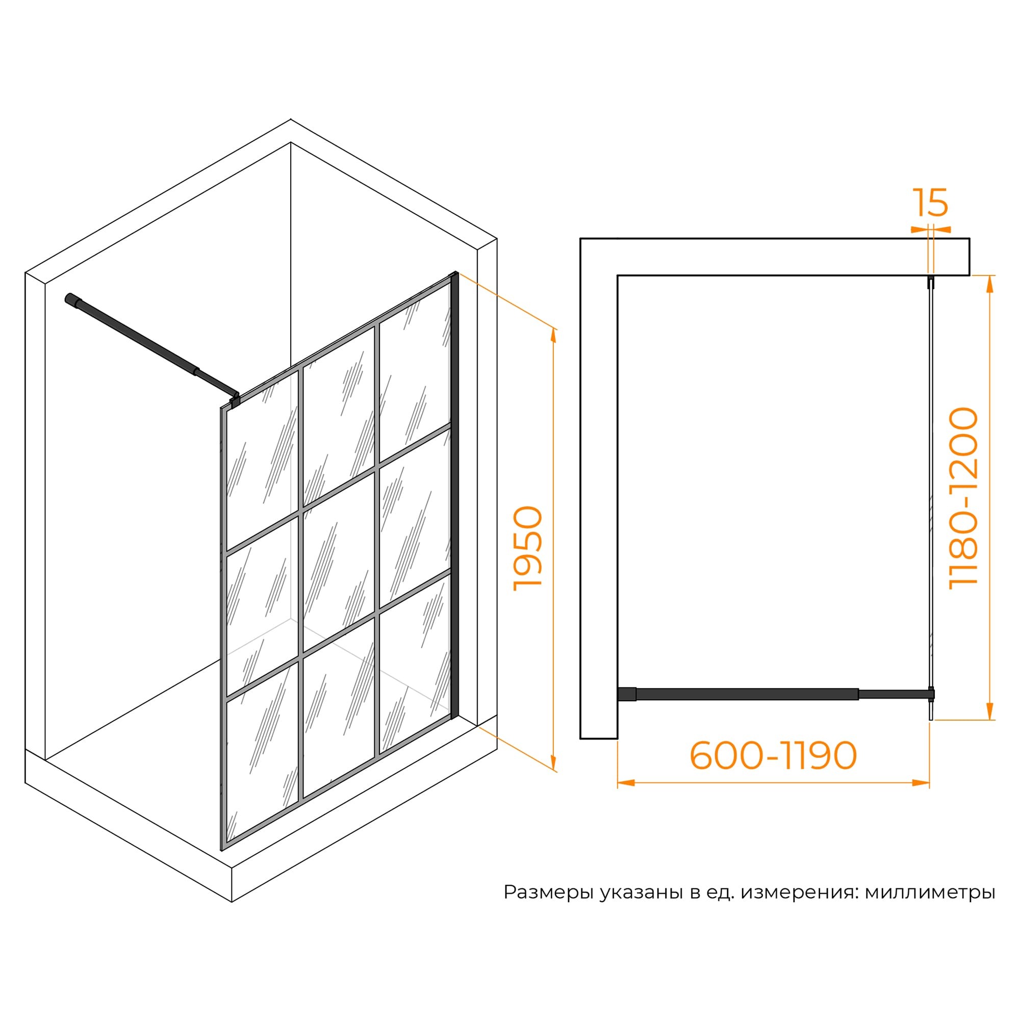Толщина стекла составляет 8 мм, что обеспечивает высокую прочность и гарантирует безопасность использования. Исполнение стекла прозрачное с рисунком, который нанесён методом шелкографии. Пристенный профиль перегородки выполнен из качественного анодированного алюминия и имеет черный цвет, что отлично сочетается с большинством интерьеров.
