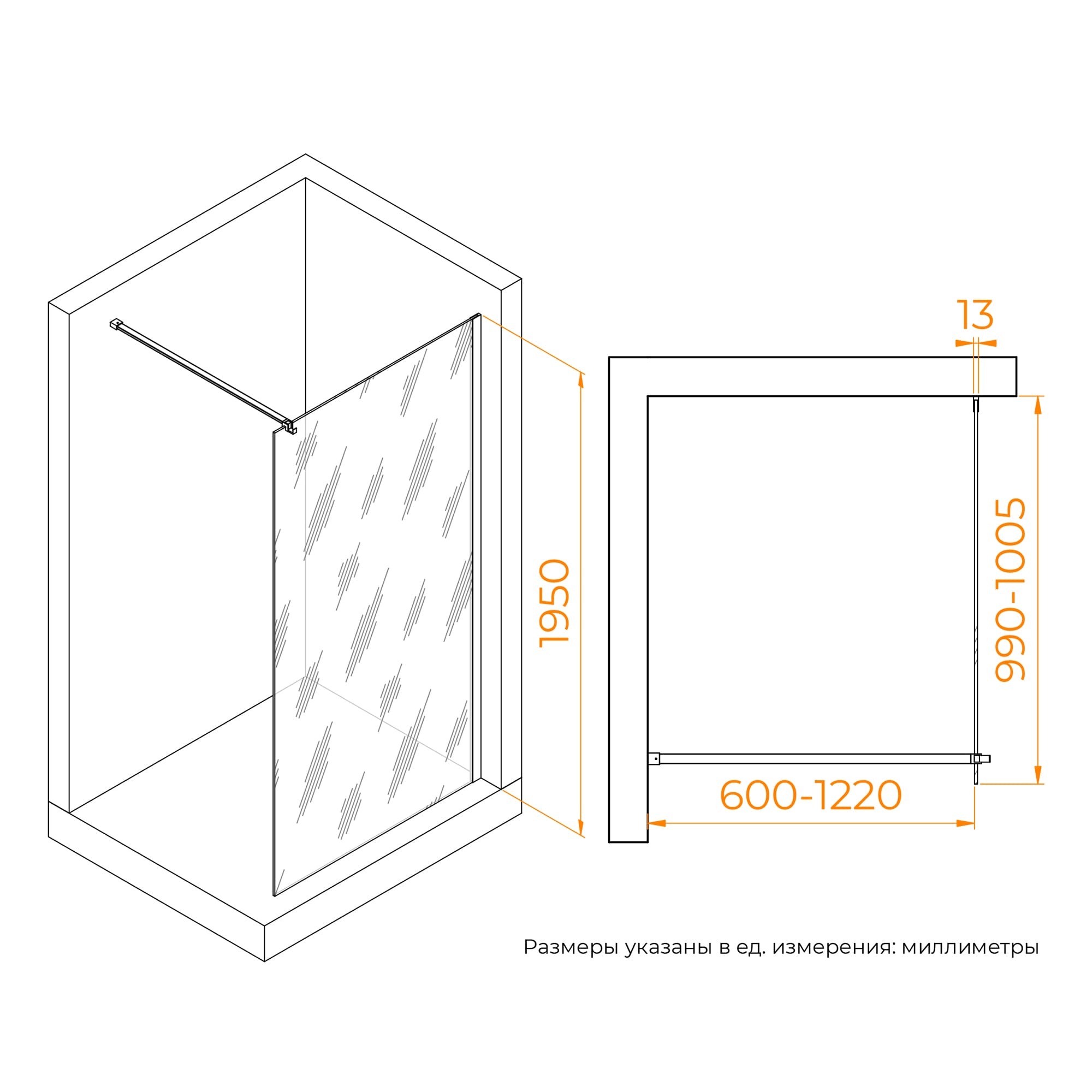 Высота: 1950 мм - позволяет комфортно использовать душевую перегородку даже людям высокого роста.