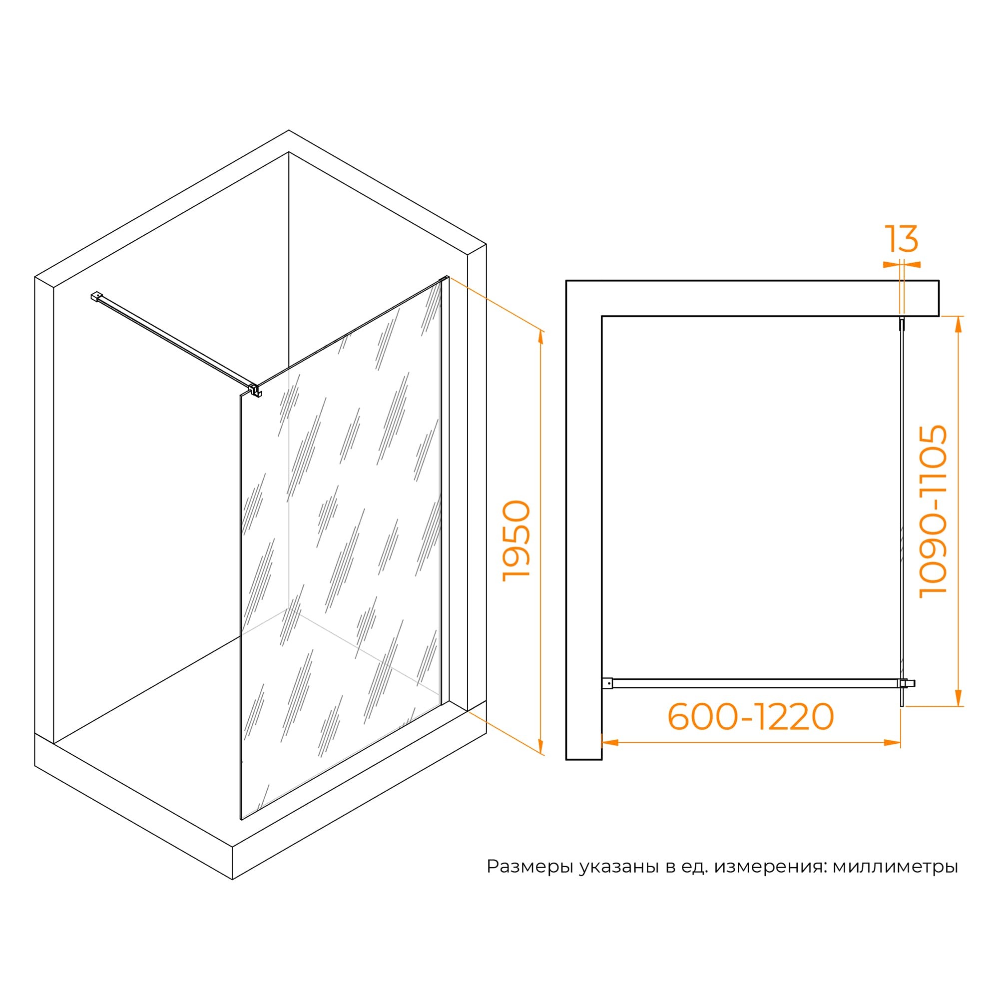 Высота: 1950 мм - позволяет комфортно использовать душевую перегородку даже людям высокого роста.