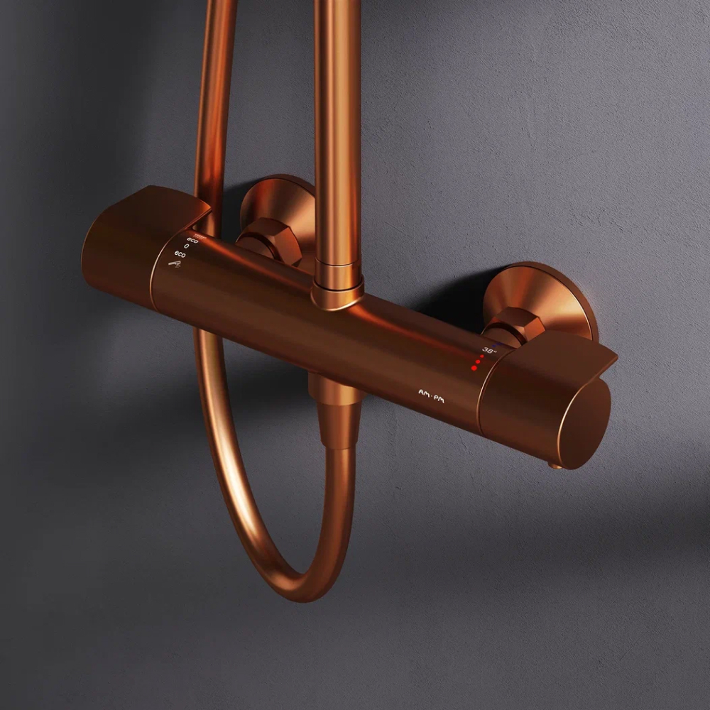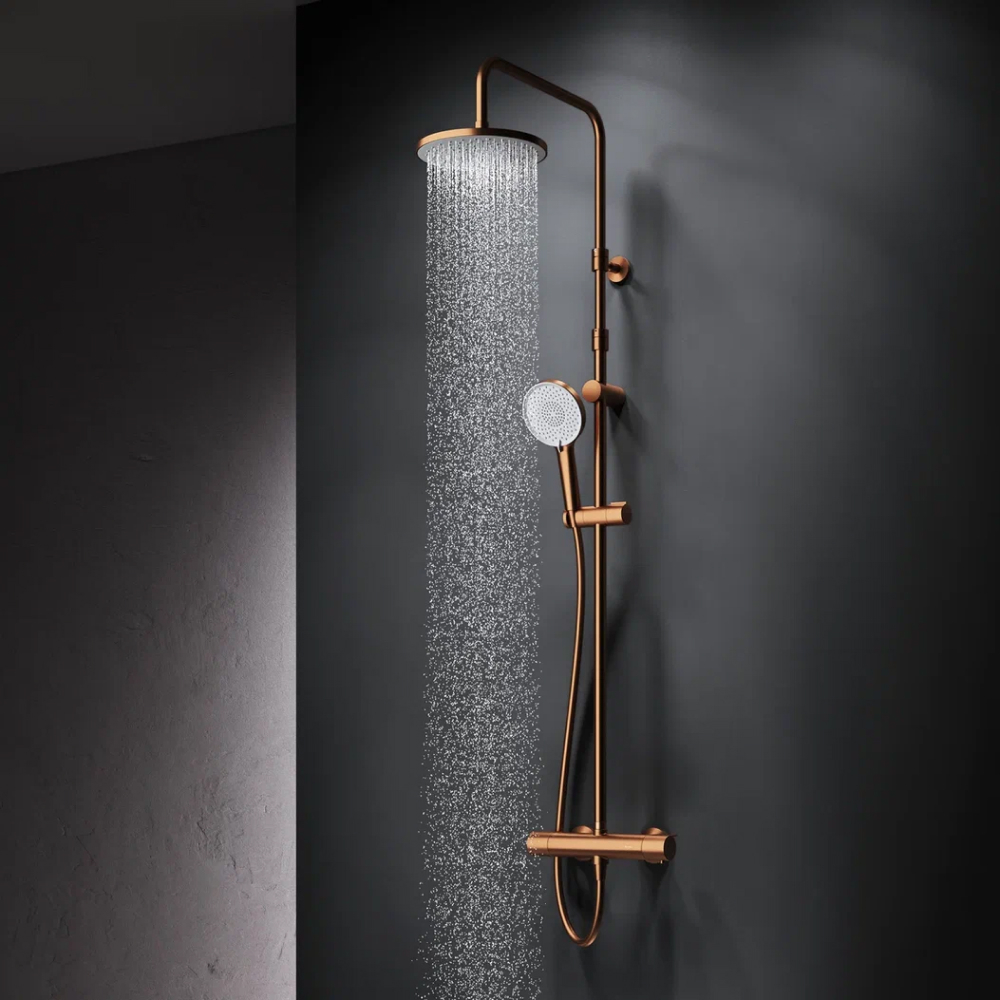 Новое прочтение культовой коллекции X-Joy. Еще больше инновационных решений для вашей ванной комнаты. Трендовые формы технологичные материалы и продуманные детали которые теперь доступны каждому. По самой привлекательной цене. Настоящее произведение ювелирного искусства в вашей ванной комнате: нежный оттенок розового золота получается методом вакуумного напыления смеси 24-каратного золота серебра и меди в процессе которого микрочастицы сплава образуют стойкое соединений с латунной основой. Благодаря специально спроектированной эргономичной ручке вы можете управлять душевой системой даже с мыльными руками. Термостатический картридж с высокочувствительным термоэлементом и быстрой реакцией на изменения температуры или давления надежно защищает от ожога даже при внезапном отключении холодной воды. Телескопическая штанга с диапазоном регулировки 400 мм сделает процесс принятия душа удобным для людей любого роста. А благодаря увеличенным размерам тропического (220 мм) и ручного (120 мм) душей вы ощутите все преимущества использования дизайнерского продукта. Душевая система X-Joy была создана для того чтобы радовать вас каждый день. ""