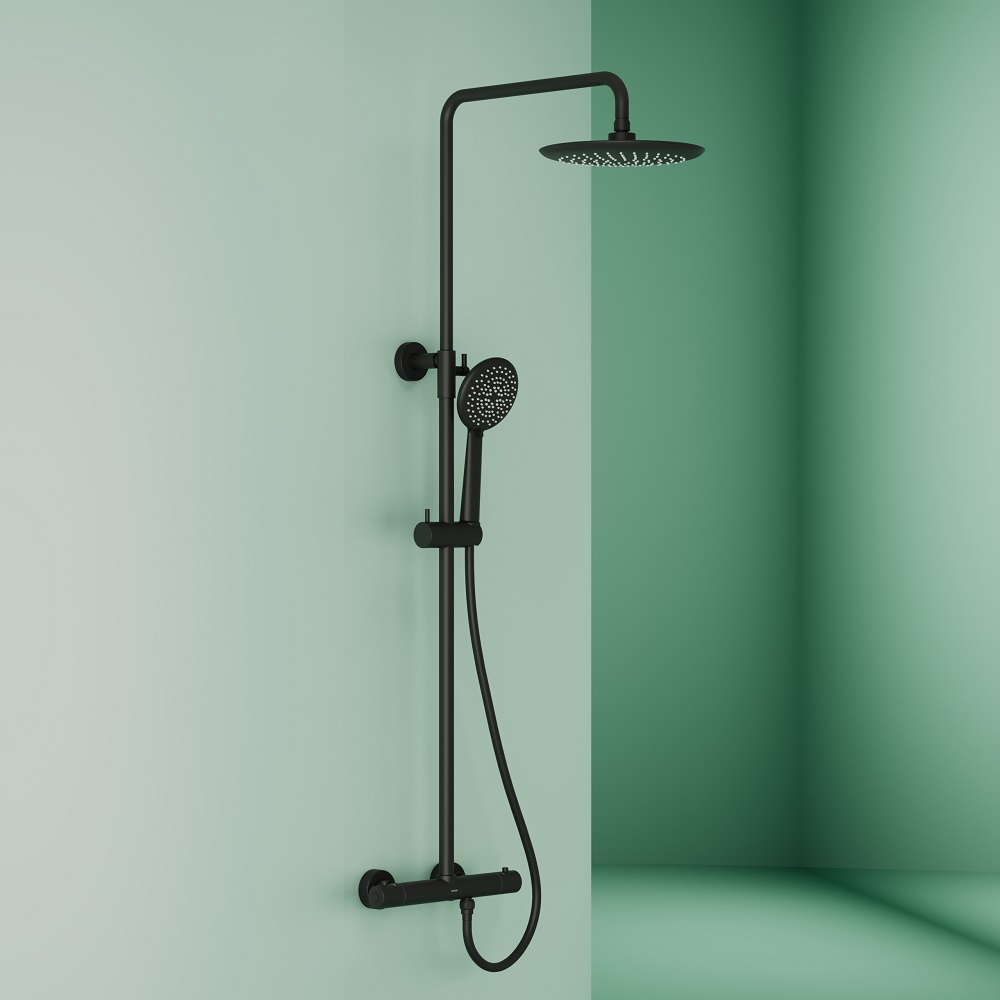 Душевая стойка SANCOS Game для душа с термостатическим смесителем, верхним, ручным душем и шлангом в комплекте, цвет черный матовый