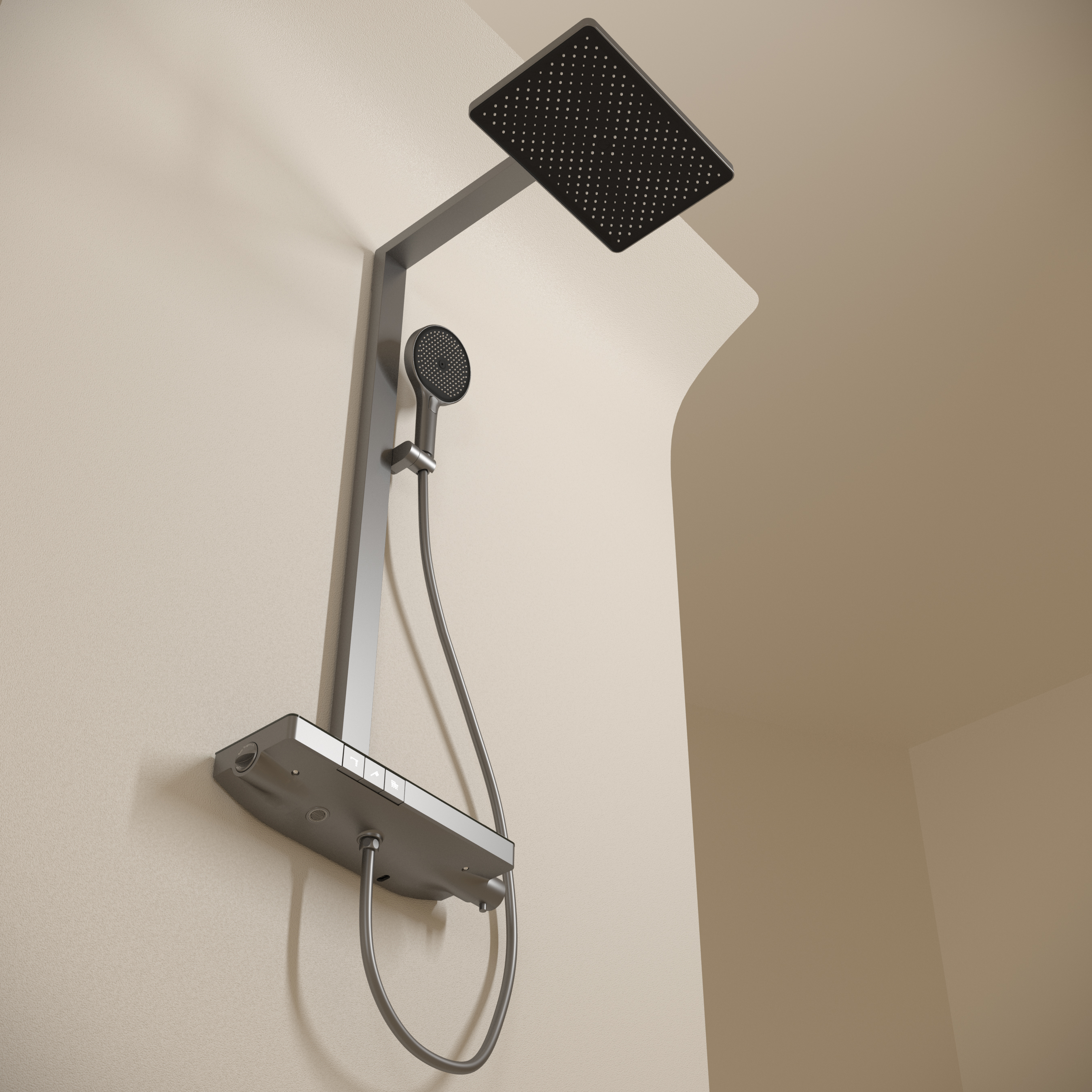 - Мультифукциональный ручной душ 130 мм, управление кнопкой