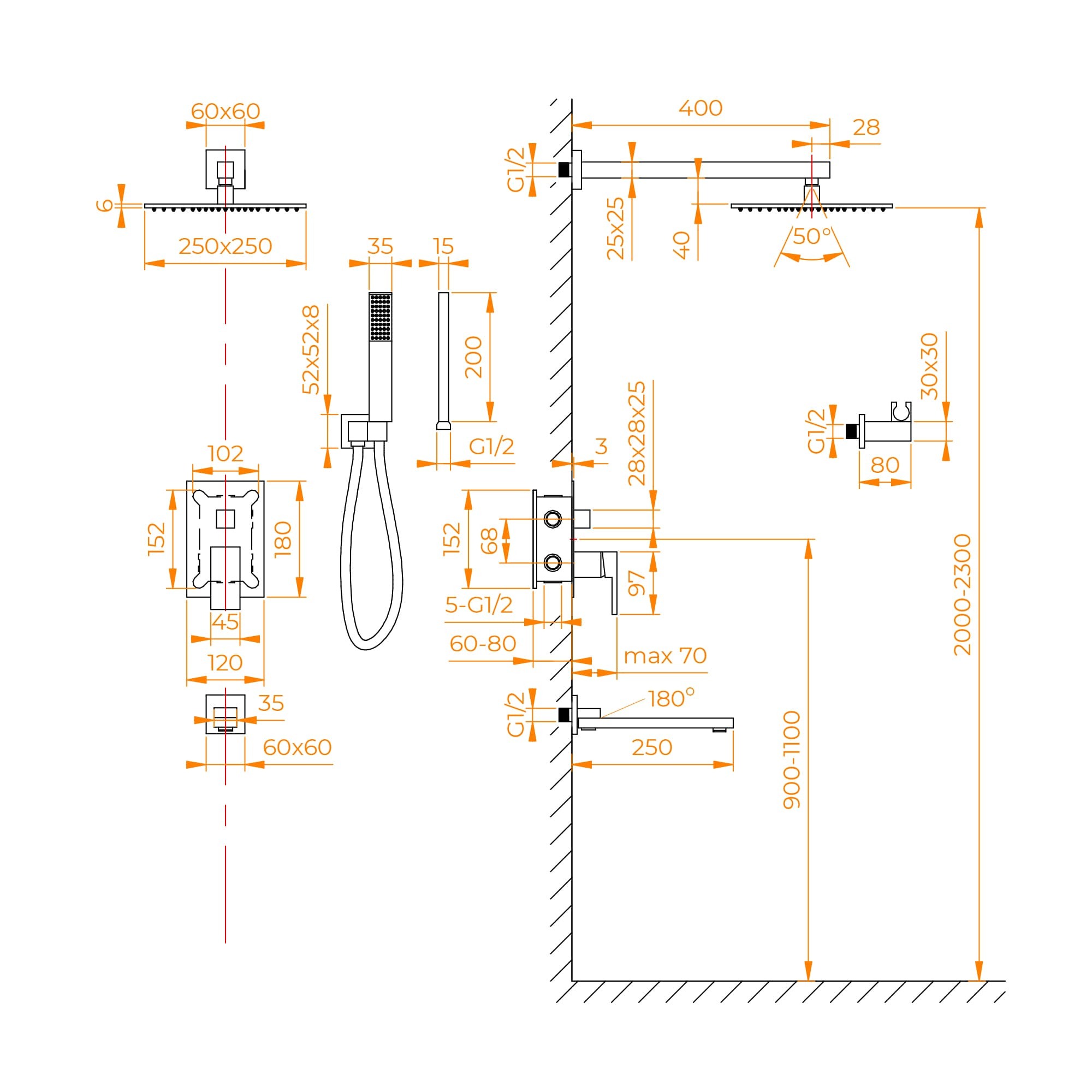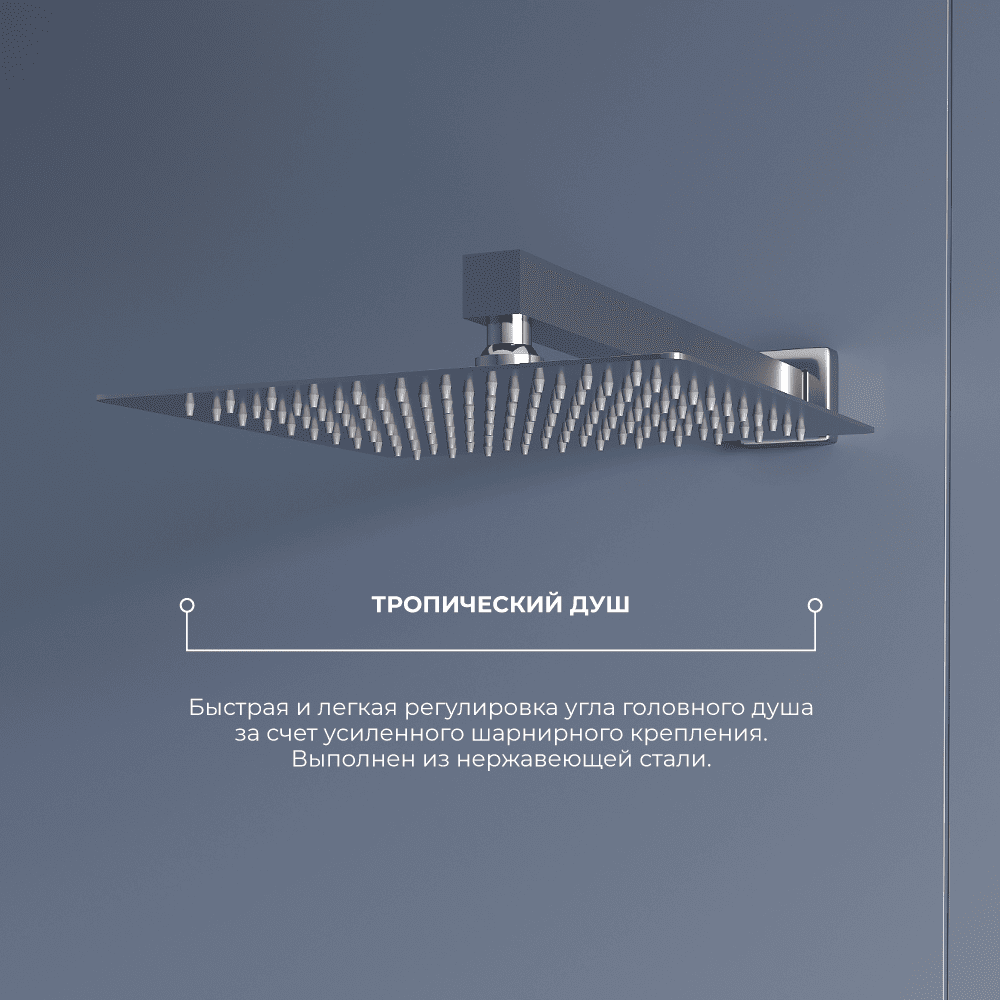 Встраиваемая душевая система выполнена из латуни и нержавеющей стали, что придаёт изделию повышенную устойчивость к образованию коррозии и ржавчины, а внутренний элемент оснащён керамическими пластинами. За счет применения передовых технологий душевые системы рассчитаны на ресурс эксплуатации не менее 10 лет.