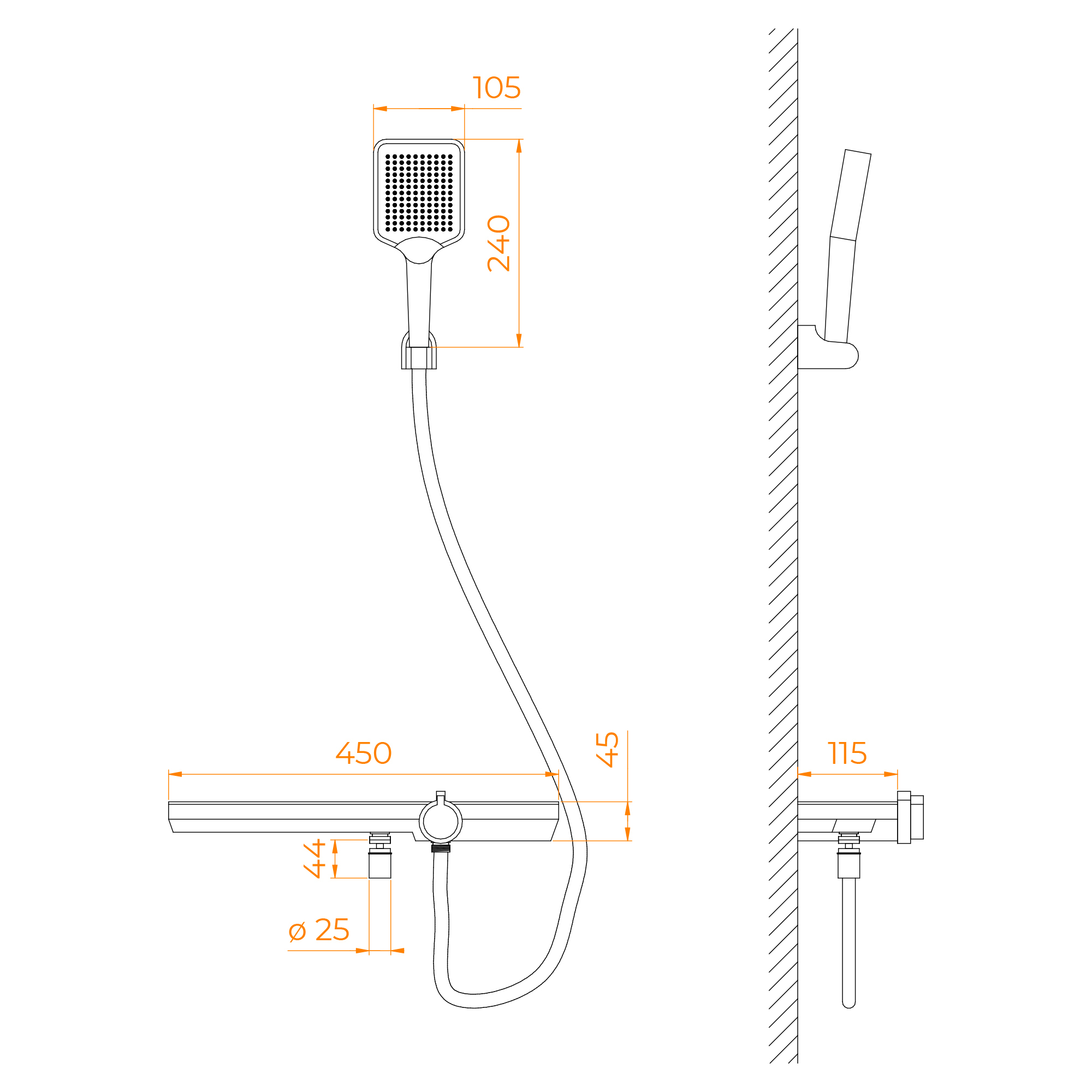 Ручной душ на гибком шланге из ПВХ длиной 1.5 м, с тремя режимами струи, изготовленный из устойчивого к износу ABS-пластика;