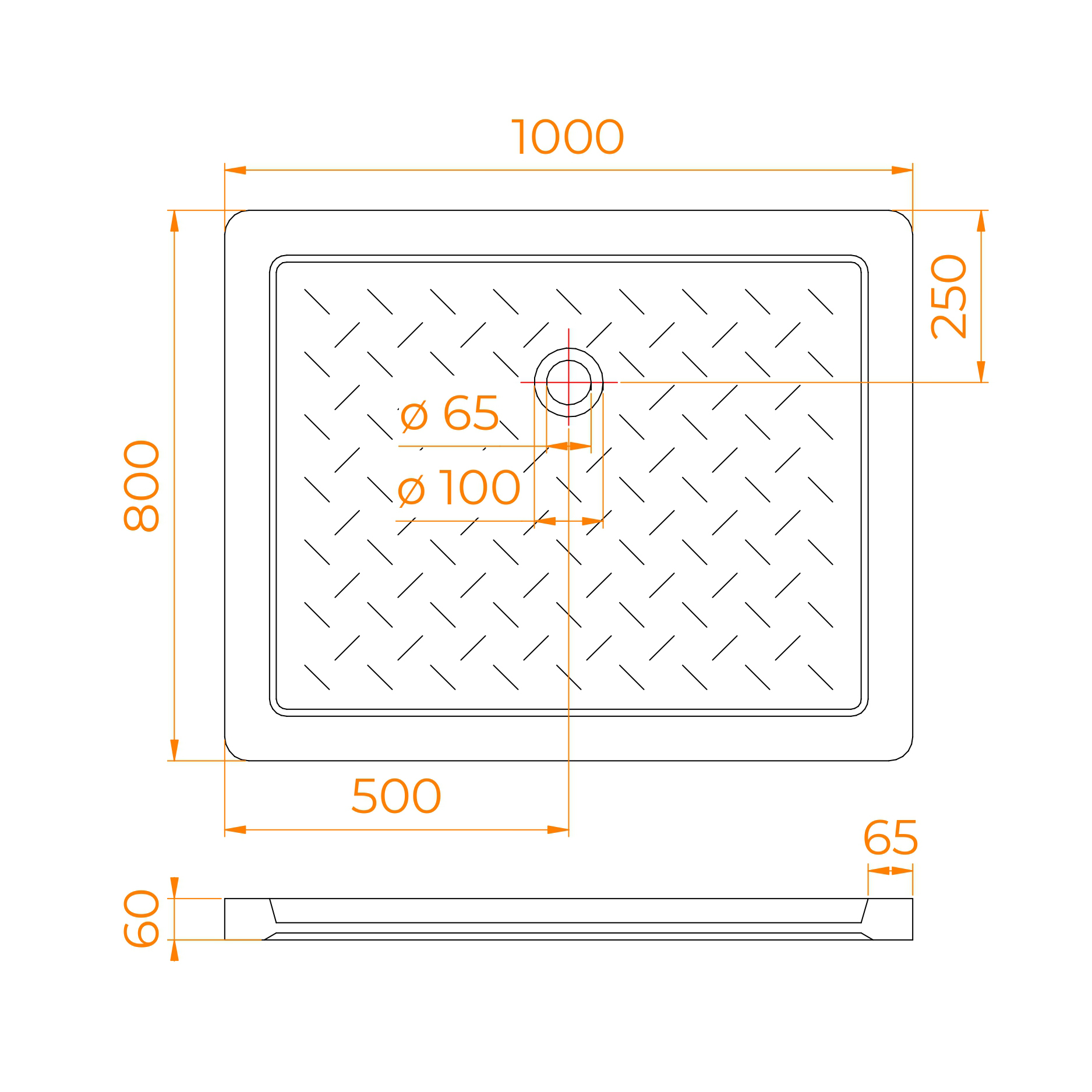 Керамическую глазурь наносят при обжиге в 1200 градусов, что придаёт поддону высокую устойчивость к царапинам и сколам, а также за счёт данной технологии поверхность поддона обладает гидрофобными свойствами, влага просто скатывается и не даёт накапливаться и впитываться загрязнениям и известковому налёту.
