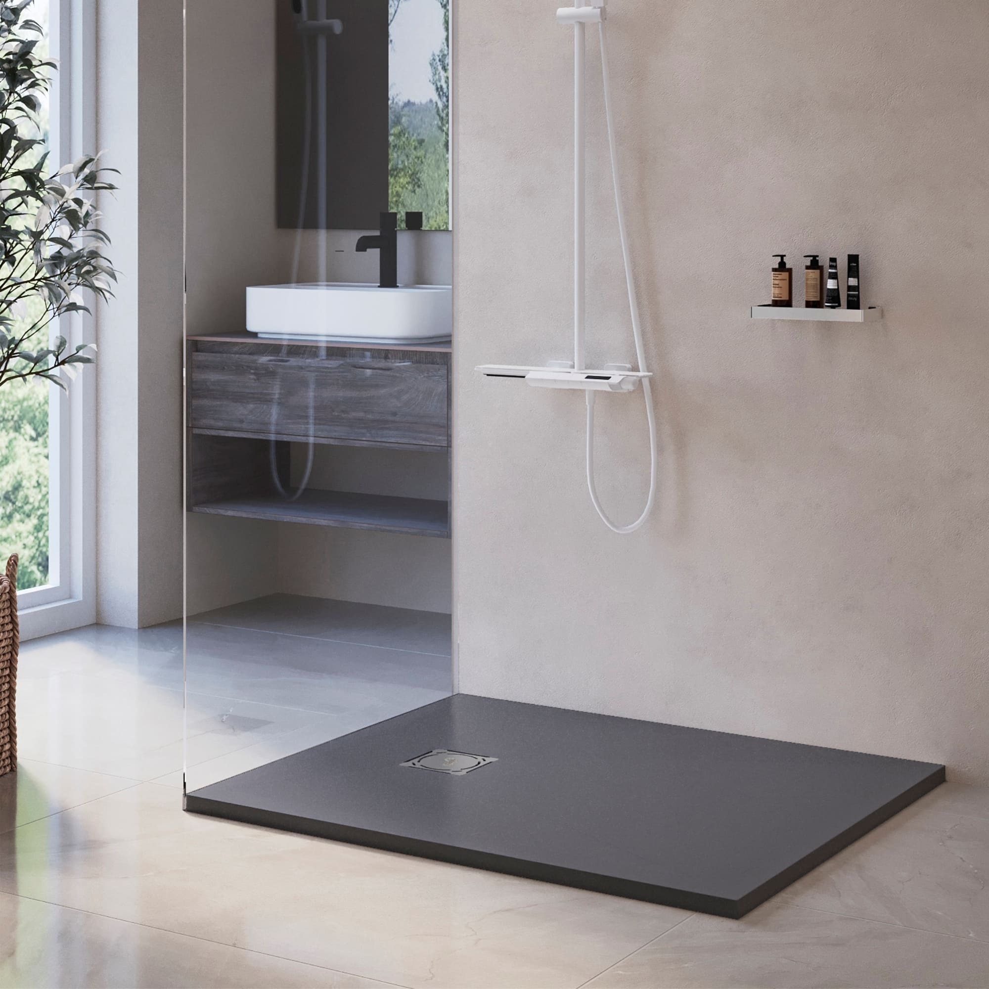 В серии душевых поддонов Stone Tray появилась новинка актуальной прямоугольной формы в остро-модном цвете «графит». Невероятно широкий размерный ряд позволит оптимально использовать пространство ванной комнаты, но если вам нужно воплотить по-настоящему уникальный проект, материал позволяет обрезать изделие по индивидуальному размеру.