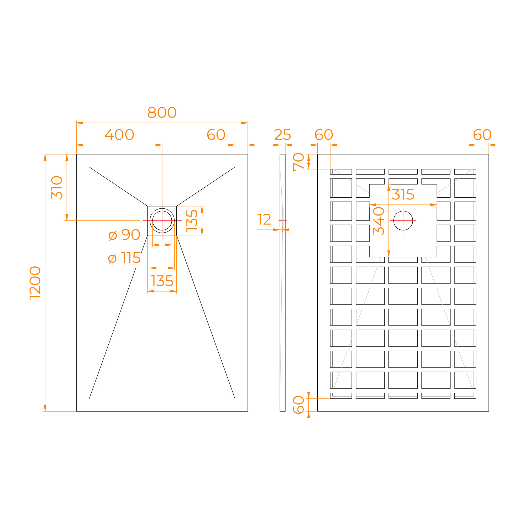 Широкий размерный ряд: от 800x800 мм с шагом в 10 см до максимального размера 900x1200 мм, что дает возможность подобрать оптимальный поддон для вашей ванной комнаты.